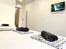 · прикроватный столик, телевизор, холодильник, фен, полотенца, кондиционер.