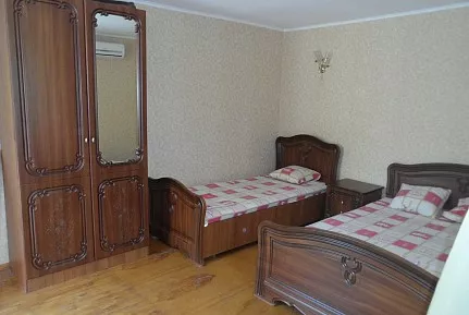 Двух местный номер,в номере двух спальная кровать (две одно спальные), шкаф, 2 тумбочки. Душ, туалет на этаже, общий на два двух местных номера. Номер находится на втором этаже.