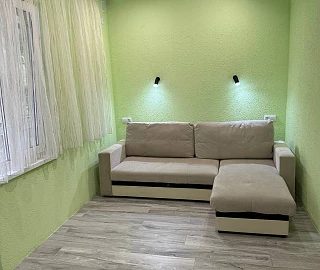 Однокомнатный номер эконом со своим с/у на первом этаже . Не далеко от кухни . Спальное место раздвижной диван . Проживать можно от одного до двух человек