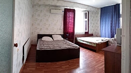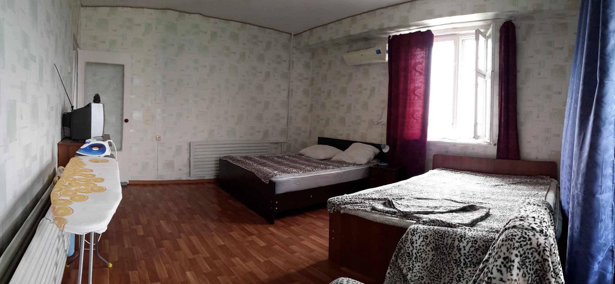 Квартира расположена в 16 этажном доме, на 8 этаже. В доме есть лифт. Просторная квартира площадью 45 м2. Просторная ванная комната, расположена отдельно от туалета. В туалете есть раковина для мытья рук. Просторные кухня и коридор. В кухне двухкафорная плита. Имеется посуда и всё для приготовления пищи. Холодильник и микроволновая печь. Две комнаты, в одной две двуспальные кровати, кондиционер, интернет через оптиковолоконный кабель Wi-Fi телевидение через интернет. Во второй комнате полутоспальная кровать, ширина кровати 140 сантиметров. Рядом расположены рынок, аптека и продовольственные магазины, есть магазины , где принимают карты мир.