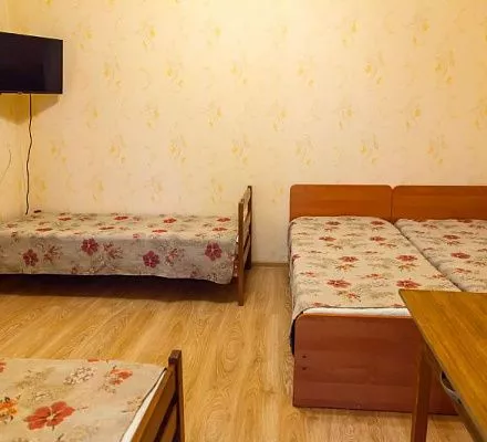 Мебель: односпальные кровати, диван-кровать, стулья, шкаф, прикроватные тумбочки, зеркало. Удобства: кондиционер, телевизор.