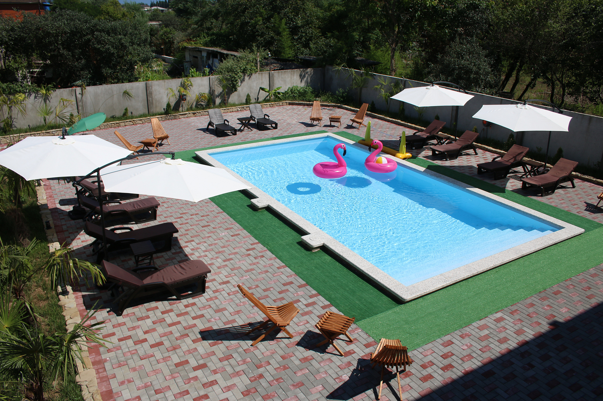 1. Новый отель в Абхазии, рядом с границей РФ, в поселке Амзара на ул. Песочная, д. 13 всего в 300 метрах от моря.