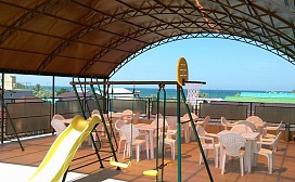 - Азовское море неглубокое и быстро прогревается, купаться можно уже в начале июня. Большие волны здесь бывают редко, вход в воду пологий – все условия для спокойных игр на пляже обеспечены.