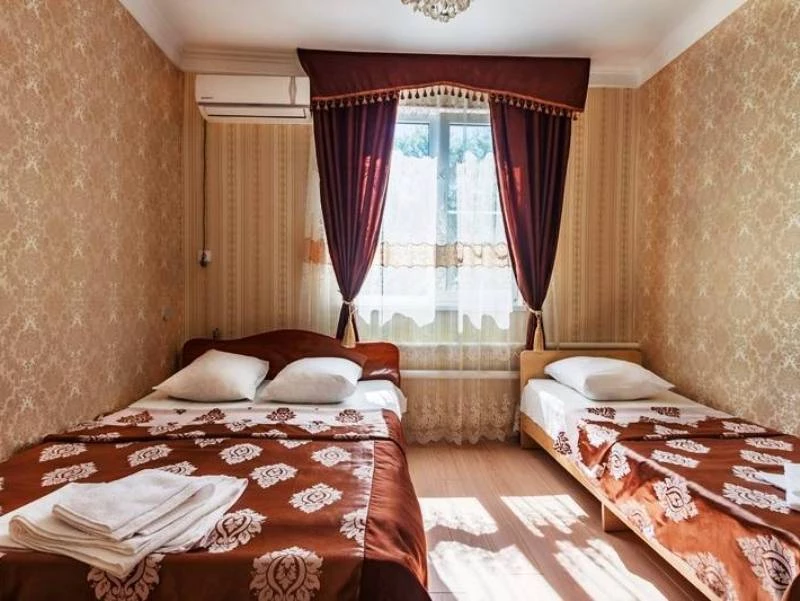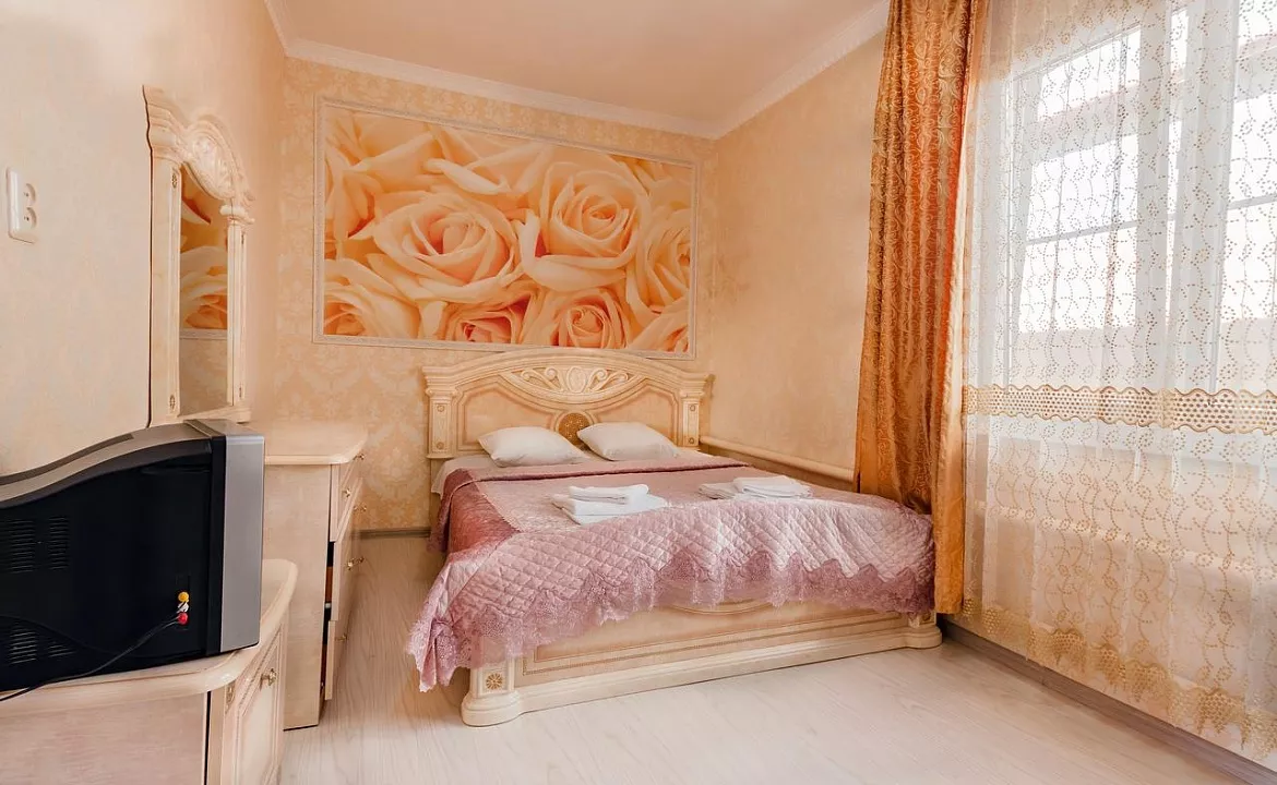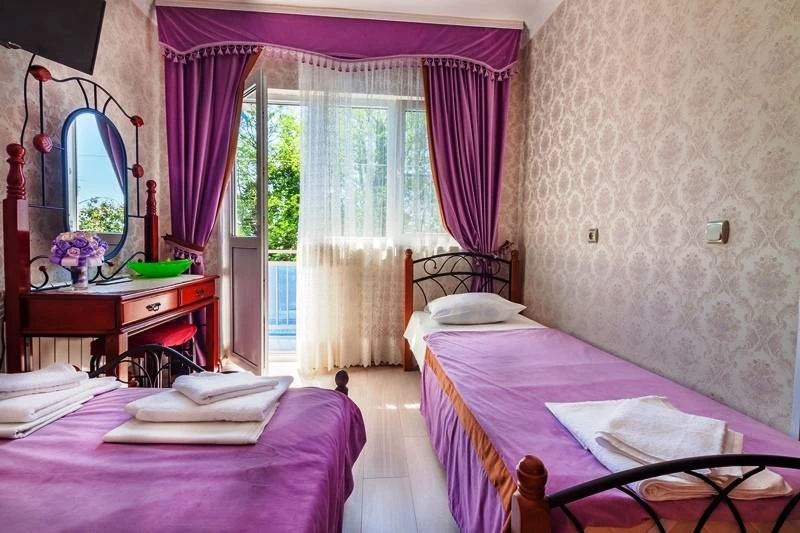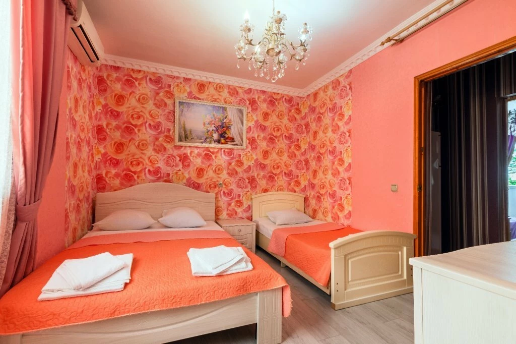 Мебель: односпальные или двуспальная кровати, кресло-кровать, шкаф, прикроватные тумбочки, зеркало. Удобства: вентилятор, кондиционер, телевизор, балкон (наличие уточнять).