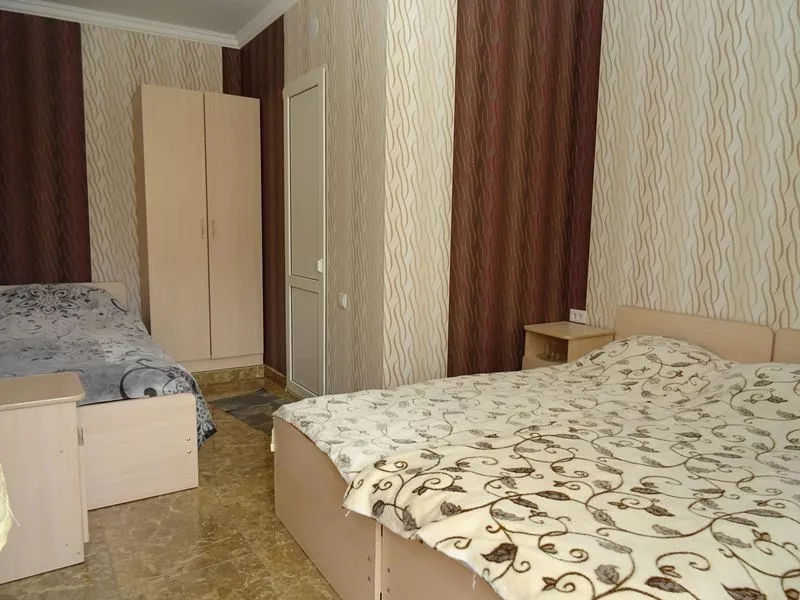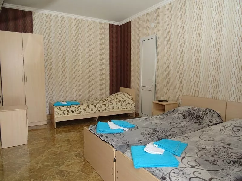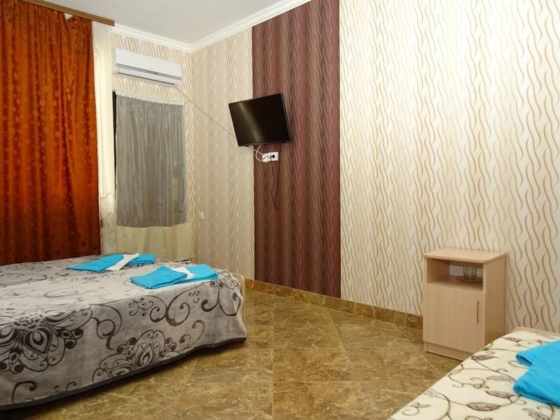 Мебель: односпальные или двуспальная кровати, шкаф, прикроватные тумбочки, вешалка, зеркало. Удобства: кондиционер, телевизор, ТВ, интернет, фен.