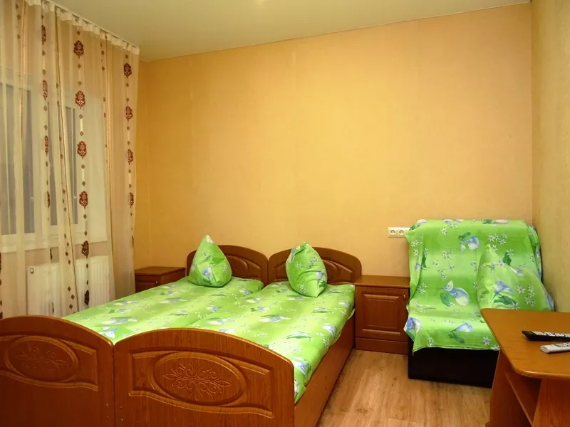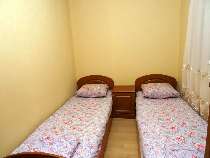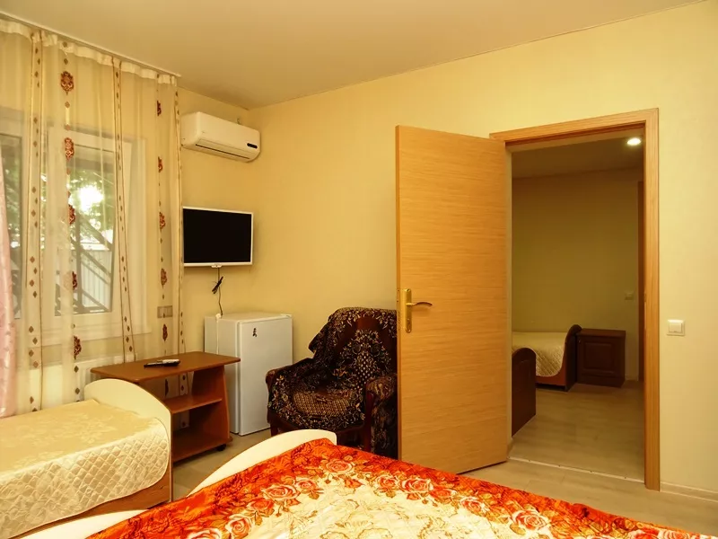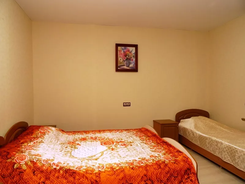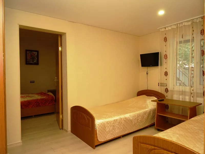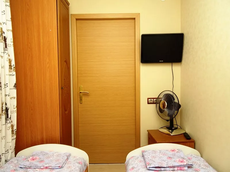 Мебель: односпальные кровати, кресло-кровать, стулья, шкаф, прикроватные тумбочки, журнальный столик, прихожая, вешалка, зеркало. Удобства: кондиционер, телевизор, спутниковое ТВ, интернет