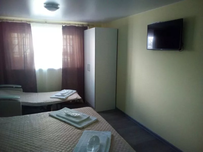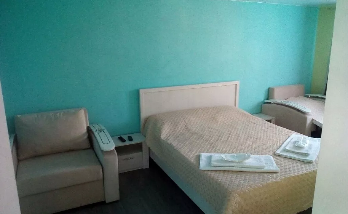Мебель: односпальные или двуспальная кровати, диван-кровать, кресло-кровать, шкаф, стулья, прикроватные тумбочки, журнальный столик, стол, прихожая, вешалка, зеркало, кухонный гарнитур, обеденная зона. Удобства: кондиционер, телевизор, спутниковое ТВ, холодильник, фен, эл. чайник, СВЧ, посуда, интернет.