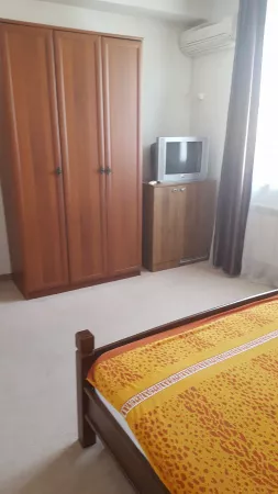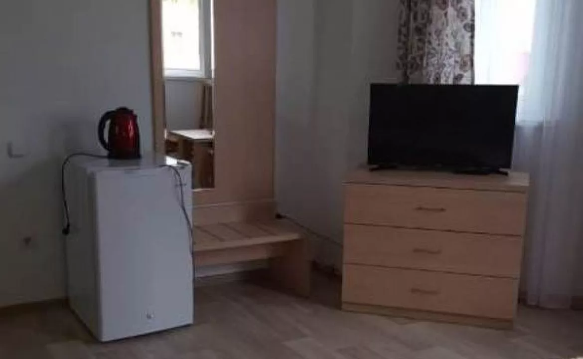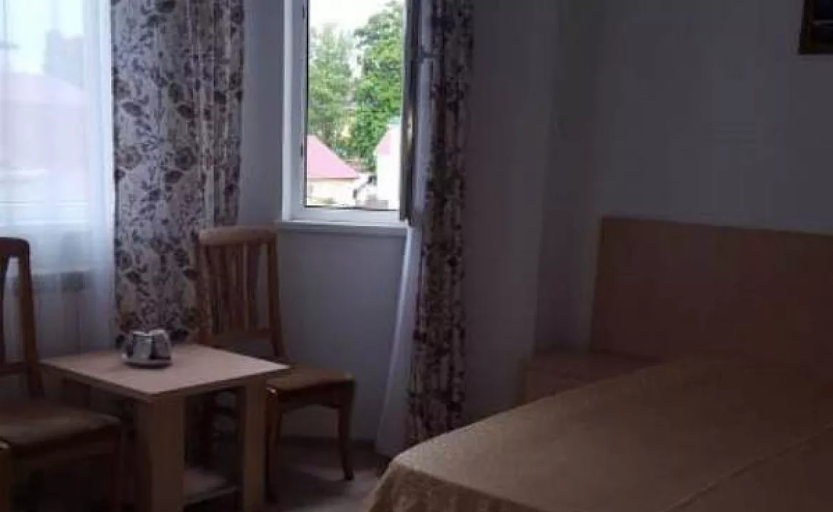 Мебель: двуспальная кровать, шкаф, прикроватные тумбочки, стулья, стол. Удобства: телевизор, холодильник, эл. чайник, Wi-Fi интернет, кондиционер, отопление, вид во двор.