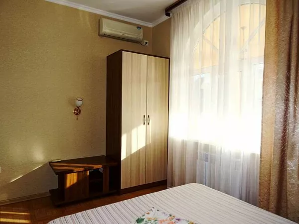 Мебель: односпальные или двуспальная кровати, шкаф, прикроватные тумбочки, стулья, стол, журнальный столик, вешалка. Удобства: кондиционер, телевизор, цифровое ТВ, холодильник, интернет, фен, балкон.