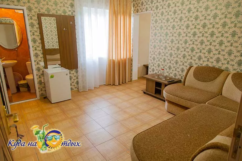 Мебель: двуспальная кровать, диван-кровать, шкаф, прикроватные тумбочки, кресло, журнальный столик, вешалка. Удобства: кондиционер, телевизор, цифровое ТВ, холодильник, интернет, фен, балкон.