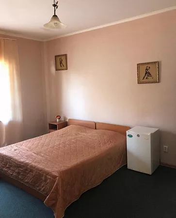 Мебель: односпальные или двуспальная кровати, шкаф, стулья, прикроватные тумбочки, стол, вешалка, зеркало. Удобства: кондиционер, телевизор, спутниковое ТВ, интернет, холодильник, эл. чайник, посуда, балкон (общий).