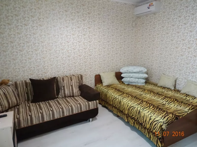 В номере: В номере: односпальные или двуспальная кровати, шкаф, прикроватные тумбочки, комод, зеркало, сплит-система, телевизор, холодильник, балкон с мебелью (общий). Душ и туалет в номере.