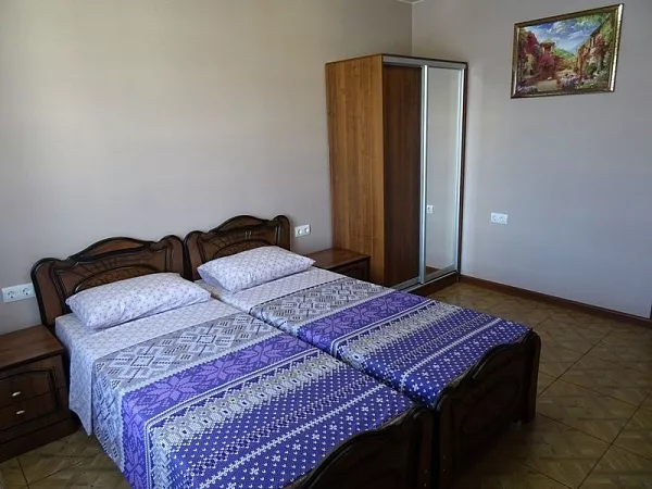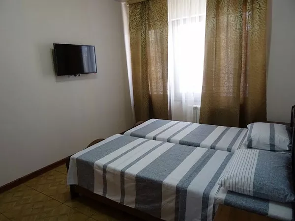 Мебель: односпальные кровати, стулья, шкаф, прикроватные тумбочки, стол, вешалка, зеркало. Удобства: телевизор, спутниковое ТВ, вентилятор, интернет.