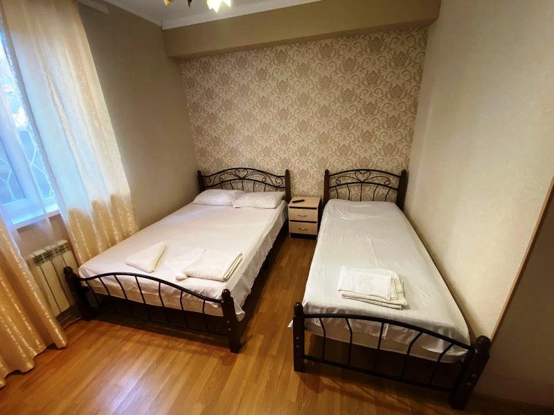 Мебель: односпальные и двуспальная кровати, стол, стулья, шкаф, прикроватные тумбочки, журнальный столик, комод, прихожая, вешалка, зеркало. Удобства: кондиционер, холодильник, телевизор, цифровое ТВ, Wi-Fi интернет, биде.