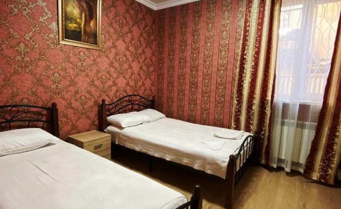 Мебель: односпальные и двуспальная кровати, кресла, стулья, шкаф, прикроватные тумбочки, журнальный столик, прихожая, вешалка, зеркало. Удобства: кондиционер, холодильник, цифровое ТВ, Wi-Fi интернет, фен (по требованию), балкон (общий).