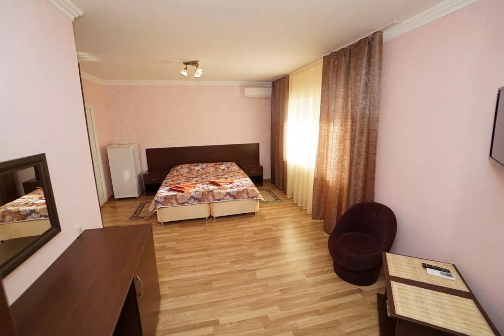 Мебель: двуспальная кровать, мягкая мебель (диван, кресла), шкаф, стулья, прикроватные тумбочки, журнальный столик, туалетный столик, стол, зеркало. Удобства: сплит-система, 2 телевизора (в каждой комнате), Wi-Fi интернет, холодильник, чайник, фен, большой балкон, уличная мебель, сушилка для белья.