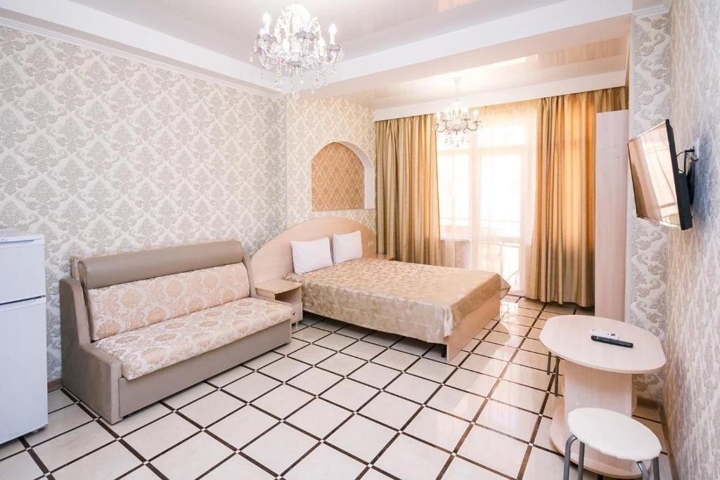 Мебель: двуспальная кровать или 2 односпальные кровати, диван-кровать, шкаф, стол. Удобства: кондиционер, вентилятор, холодильник, телевизор, спутниковое ТВ, интернет, фен, СВЧ.