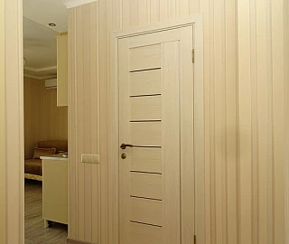 Мебель: односпальные или двуспальная кровати, кресло-кровать, шкаф, стулья, стол, комод, прихожая, вешалка, зеркало, кухонный гарнитур, обеденная зона. Удобства: кондиционер, телевизор, спутниковое ТВ, холодильник, фен, эл. чайник, СВЧ, посуда, балкон, интернет.