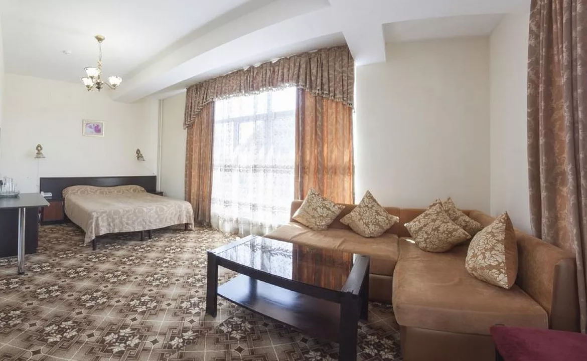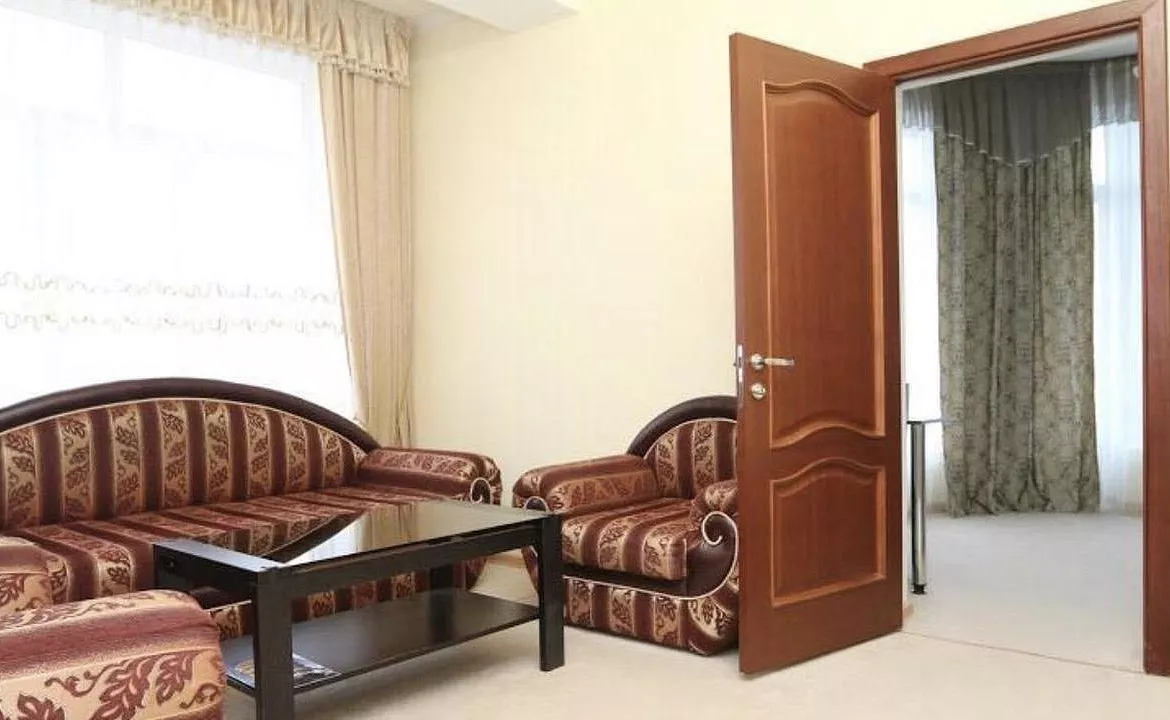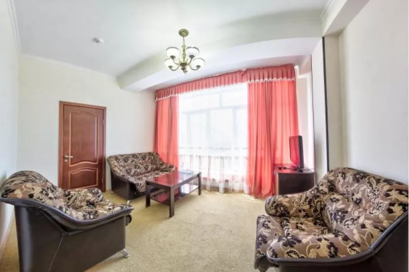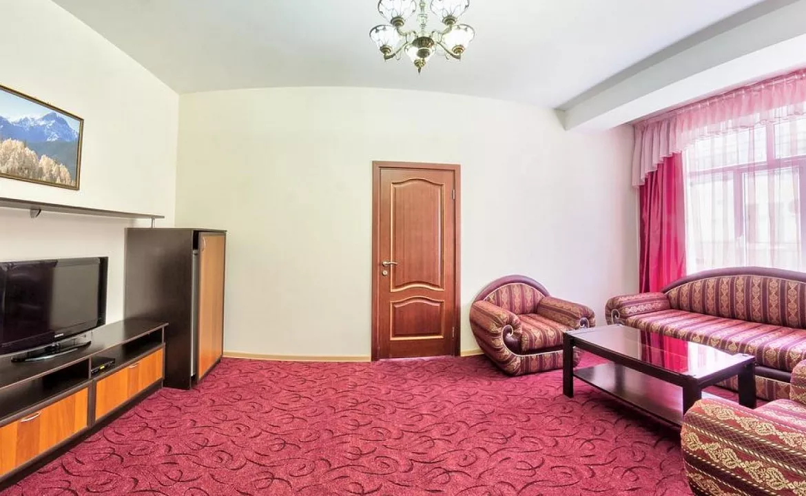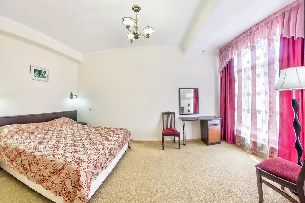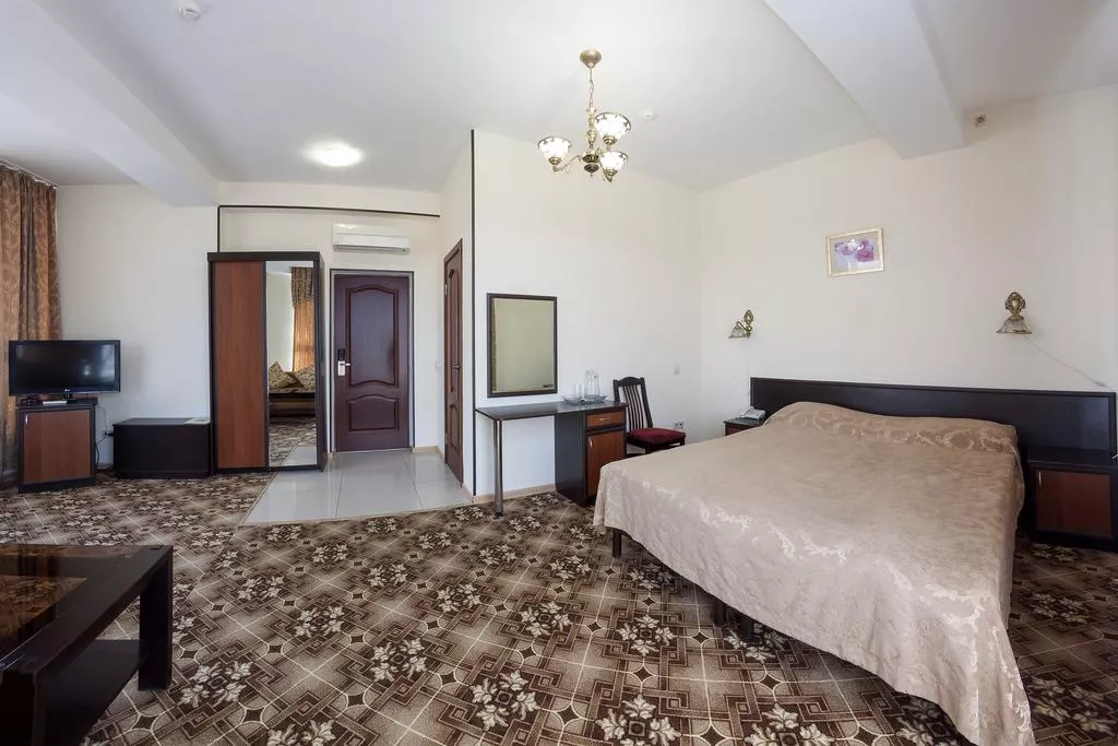Мебель: односпальные кровати, кресла, диван-кровать, стулья, шкаф, прикроватные тумбочки, журнальный столик, туалетный столик, комод, прихожая, вешалка, зеркало. Удобства: кондиционер, холодильник, телевизор, спутниковое ТВ, эл. чайник, посуда, интернет, фен.