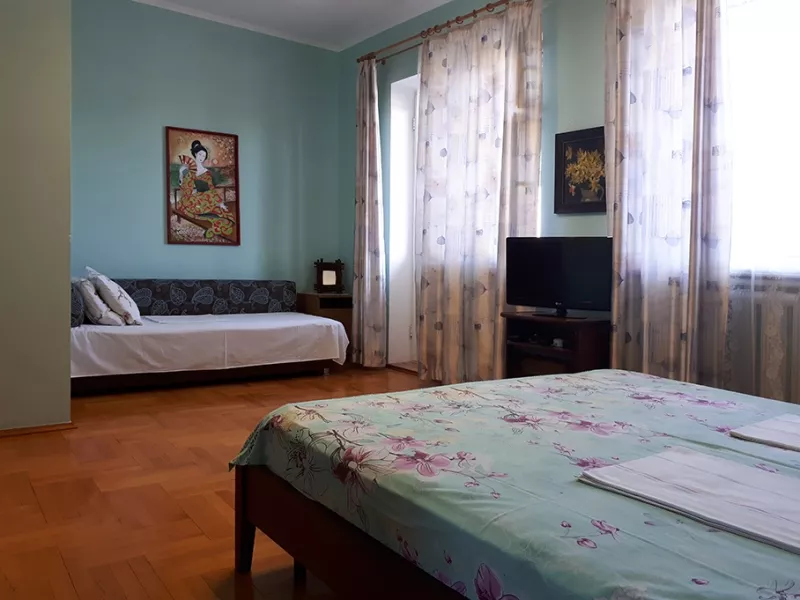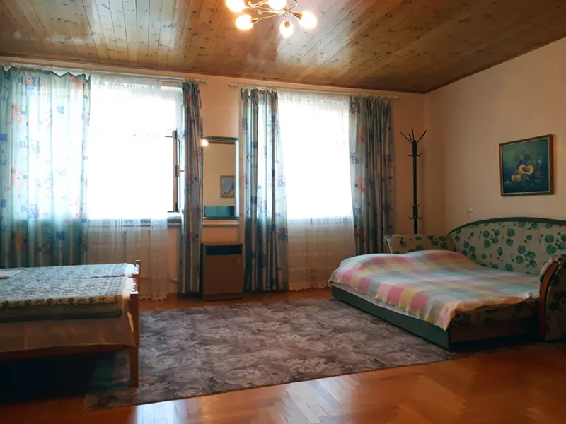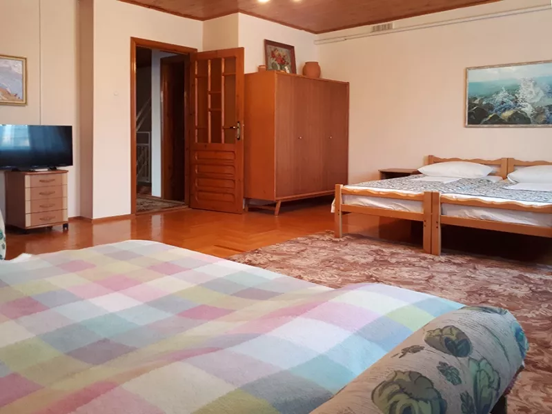 Дом находится в спальном районе города, удалённом от городского шума и музыки. 2 этажа - это 5 просторных комнат. Общее количество мест: от 8 до 14 человек. До моря (песчаный пляж) спокойным шагом 20-25 мин. По пути на пляж, вы пройдёте мимо Центрального продуктового рынка, "Магнита", Кинотеатра, до них 7-10 мин. Рядом с домом есть уютное кафе с хорошими комплексными завтраками, обедами, ужинами, продуктовые магазины, "Агрокомплекс".