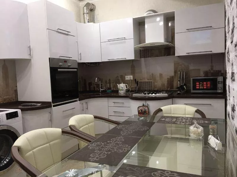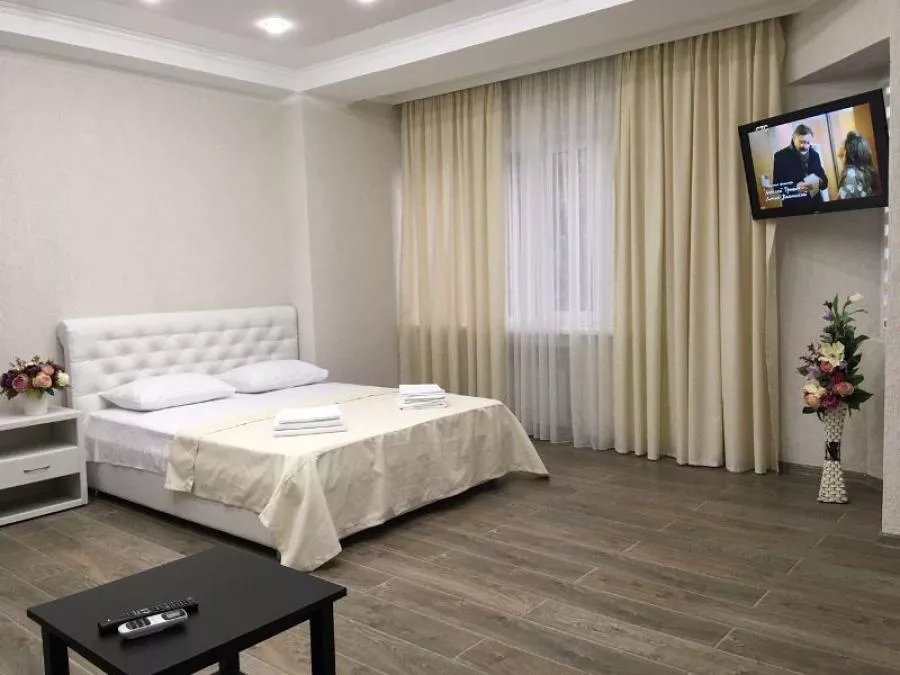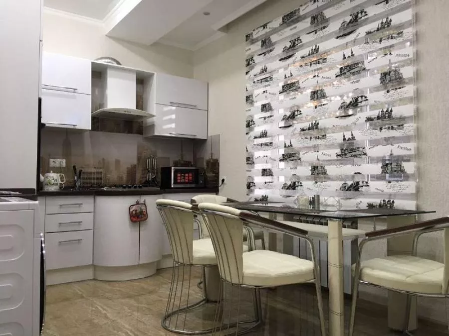 Мебель: двухспальная кровать, диван-кровать, кресло-кровать, шкаф, стулья, прикроватные тумбочки, журнальный столик, стол, прихожая, вешалка, зеркало, кухонный гарнитур, обеденная зона. Удобства: сплит-система, телевизор, интернет, холодильник, СВЧ, эл. чайник, посуда, фен, балкон.