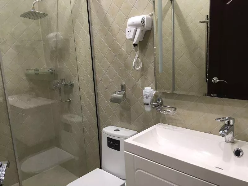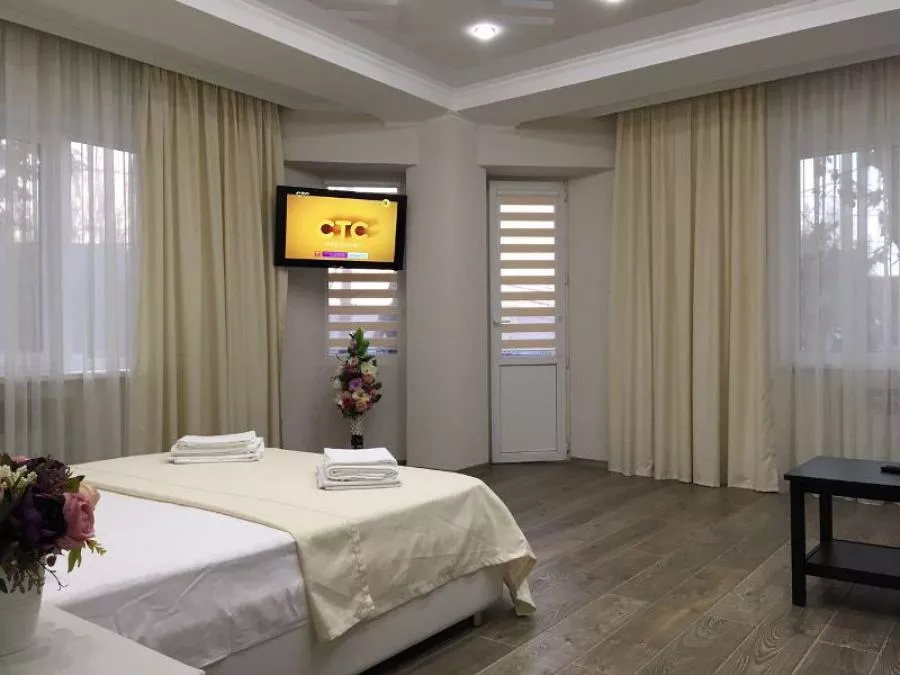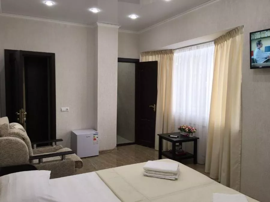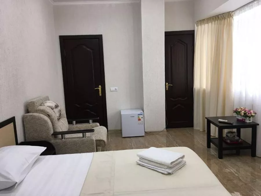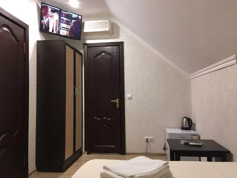 Мебель: односпальные или двуспальная кровати, кресло-кровать, шкаф, стулья, прикроватные тумбочки, журнальный столик, вешалка, зеркало. Удобства: сплит-система, телевизор, ТВ, интернет, холодильник, эл. чайник, посуда, фен.