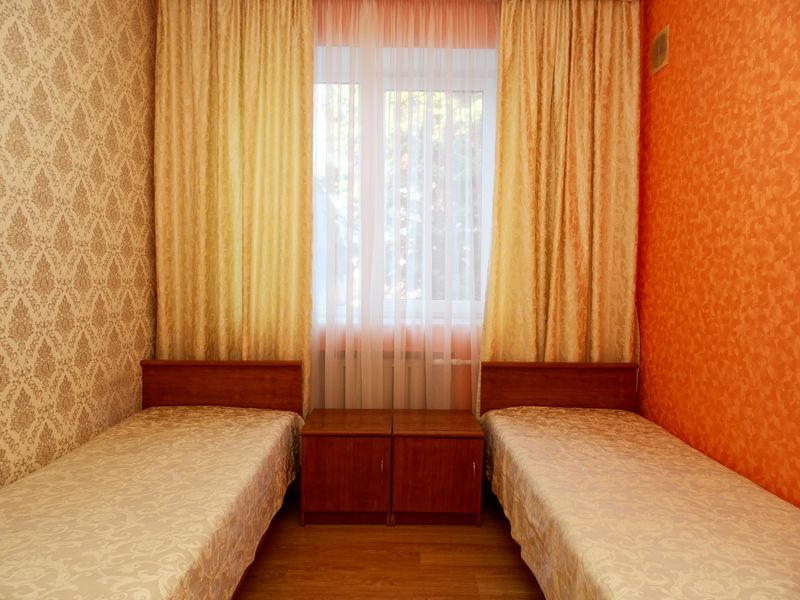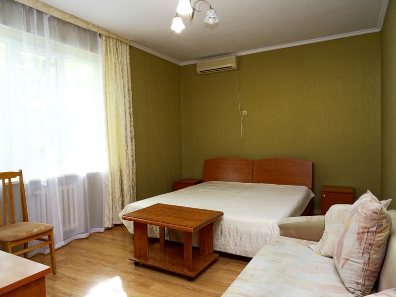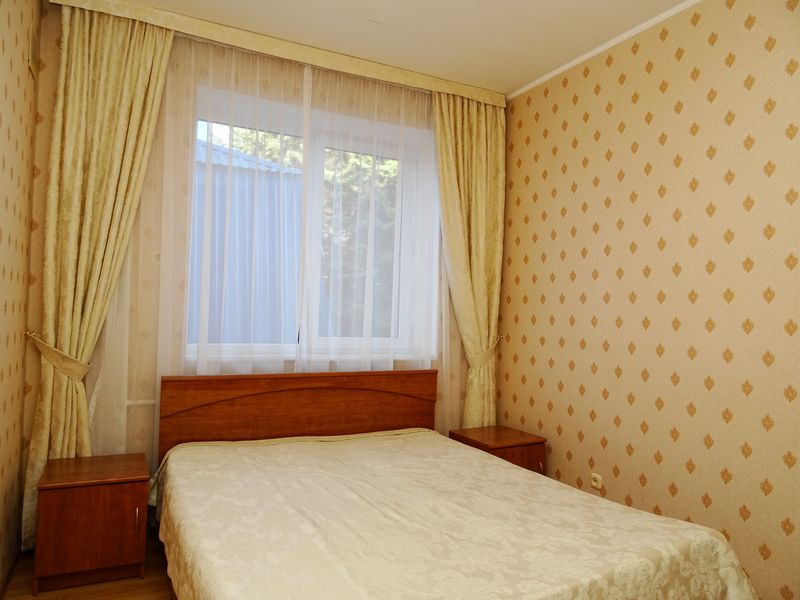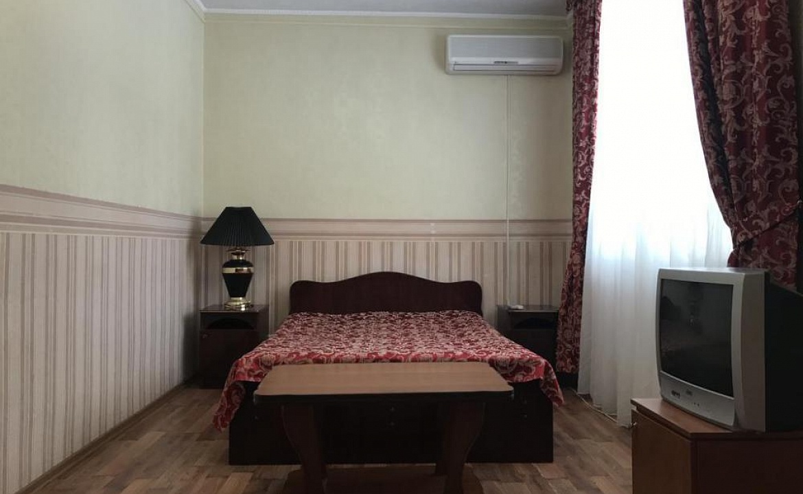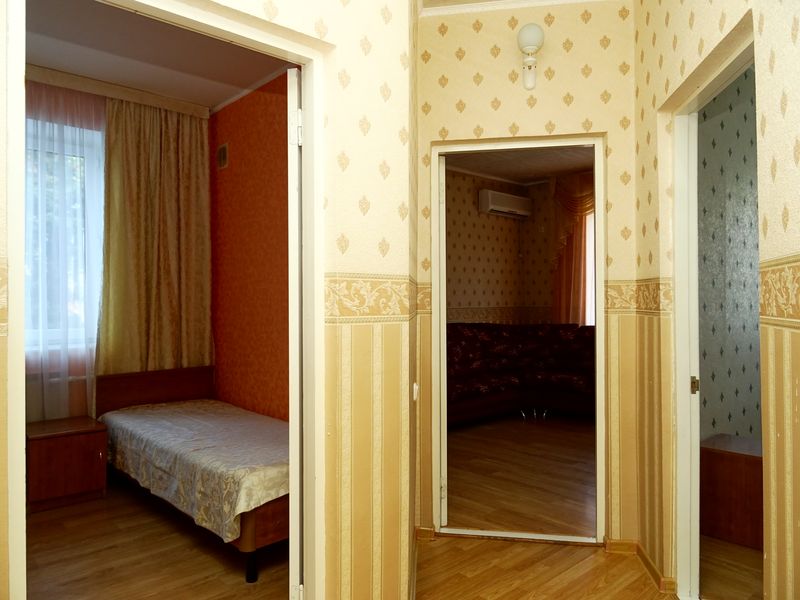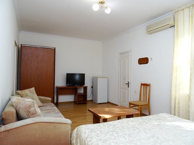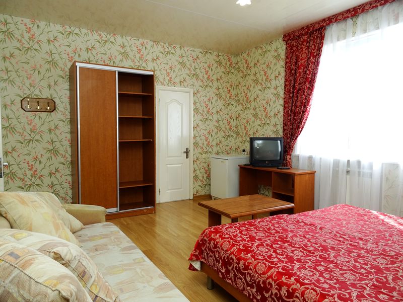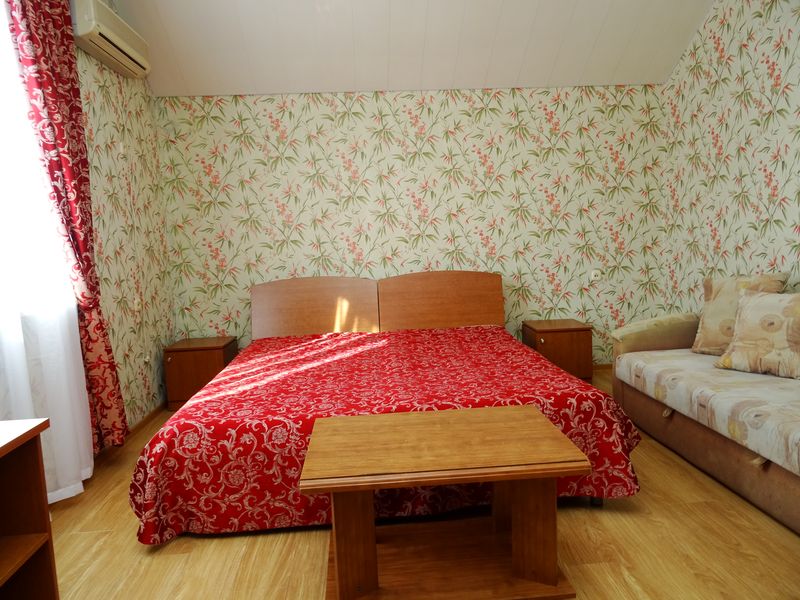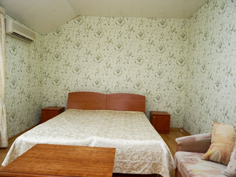 Мебель: односпальные или двуспальная кровати, диван-кровать, шкаф, стулья, прикроватные тумбочки, зеркало. Удобства: сплит-система, телевизор, холодильник, интернет.