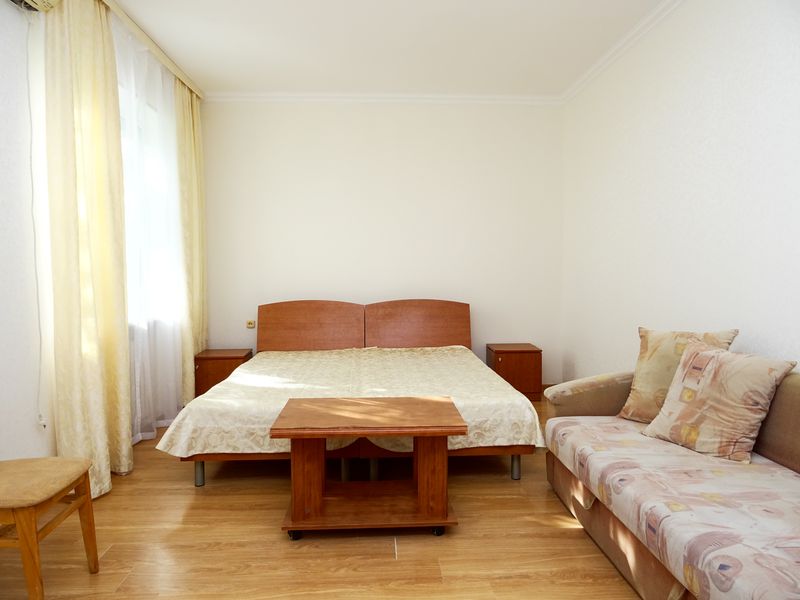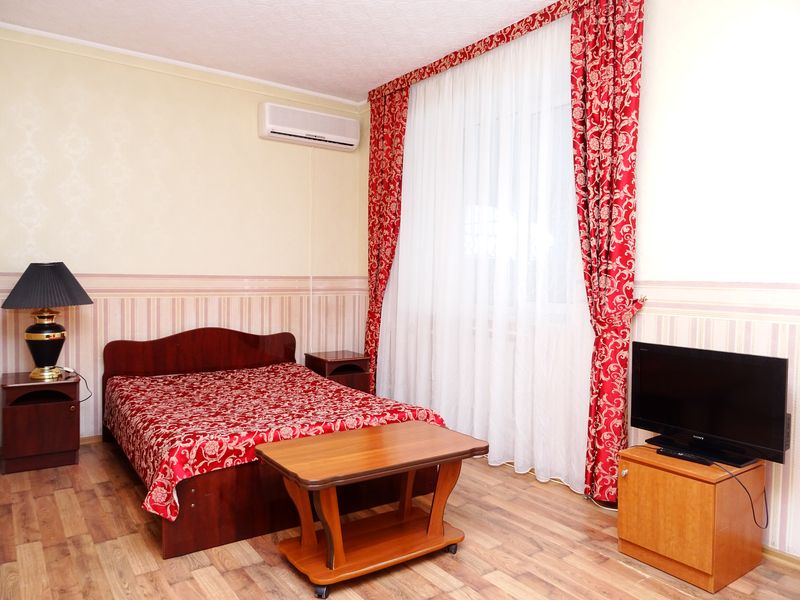 Мебель: односпальные или двуспальная кровати, диван-кровать, кресло-кровать, шкаф, стулья, прикроватные тумбочки, журнальный столик, зеркало. Удобства: сплит-система, телевизор, холодильник, интернет, балкон.