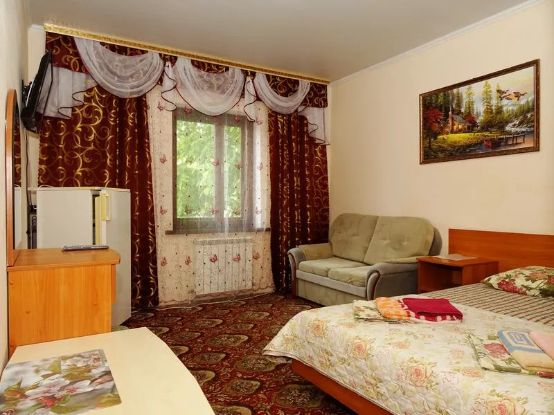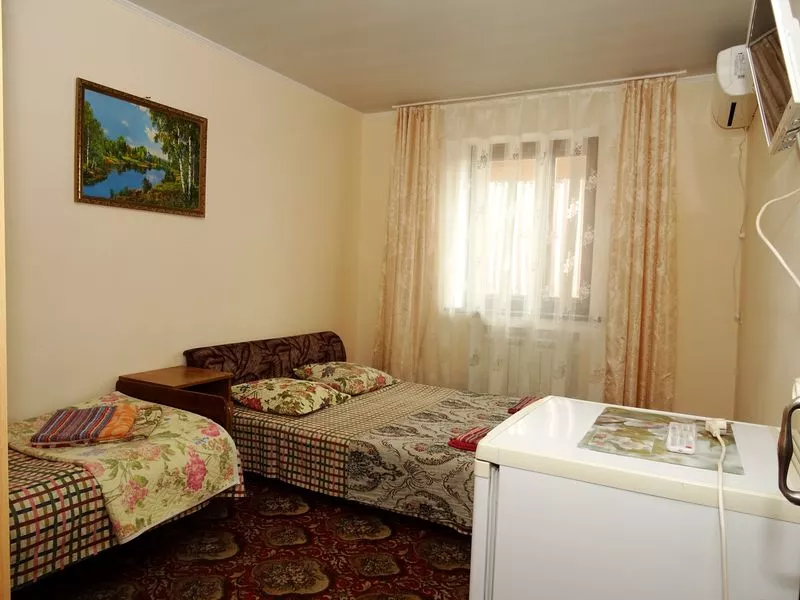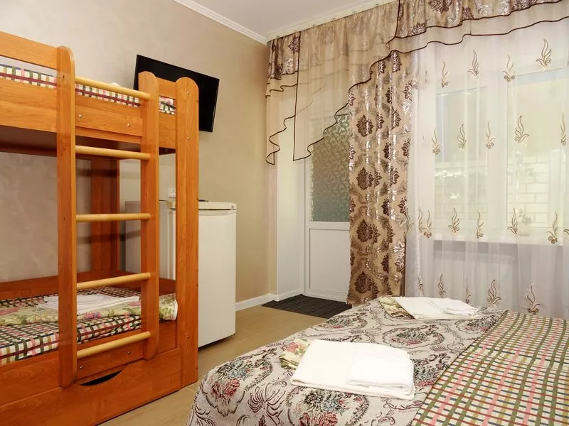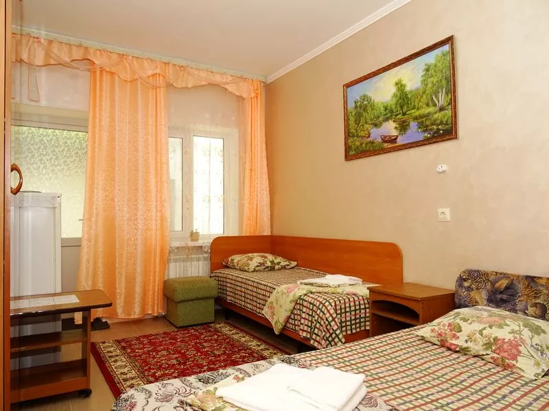 Мини-гостиница расположена в самом центре Анапы на тихой зеленой улице, в нескольких минутах ходьбы до песчаного пляжа, вдали от шумных дискотек и ночных кафе. Гостиница представляет собой комплекс из двух зданий 2-х-4-х этажей, уютные комфортабельные номера со всеми удобствами, отопление, постоянная горячая и холодная вода. На территории мини-гостиницы имеется крытый приятный тихий дворик, кухня, где вы можете воспользоваться газовой плитой, для самостоятельного приготовления пищи, микроволновая печь, эл. чайник, полный набор кухонной посуды. В мини-гостинице Вас ждёт приятная располагающая к отдыху обстановка, радушные и доброжелательные хозяева. Будем каждому рады в нашей Мини-гостинице. Добро пожаловать!