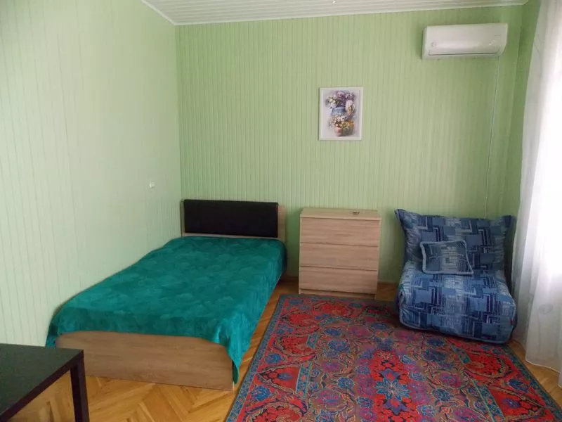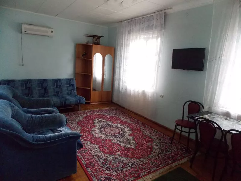 Для приготовления пищи имеется оборудованная, всем необходимым, кухня. К вашим услугам: места для отдыха, мангал, беседка, детская площадка, парковка на 9 авто. Работает Wi-Fi, цифровое телевидение, прачечная, стиральная машинка (платно), гладильная доска и утюг. Смена белья и полотенец раз 5-7 дней. Возможен трансфер, организация экскурсий, морские прогулки (платно).