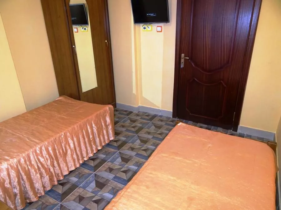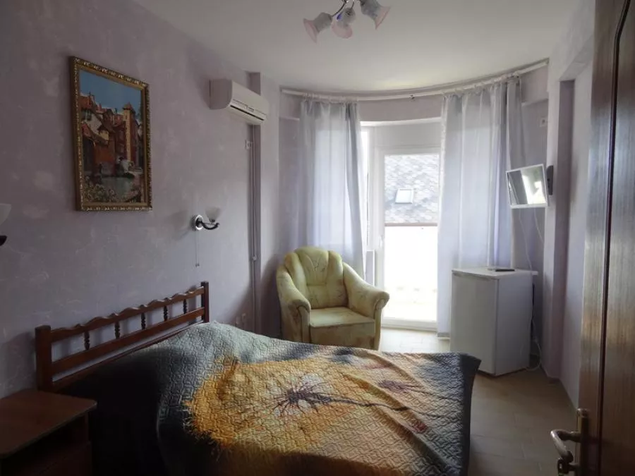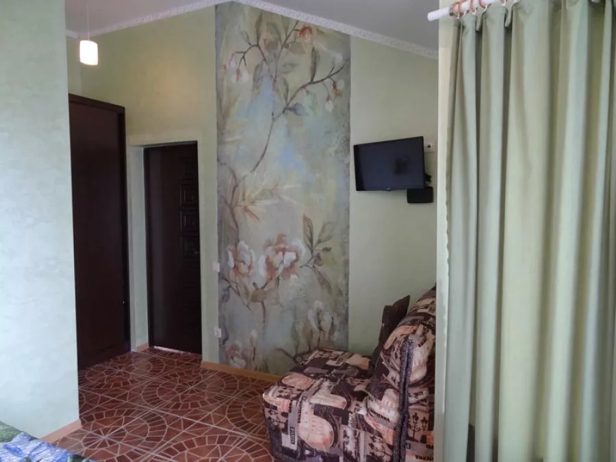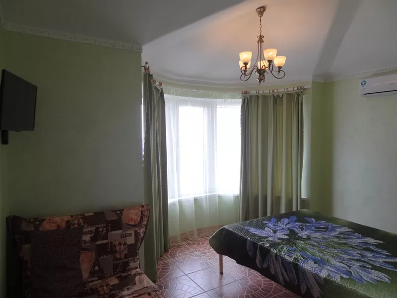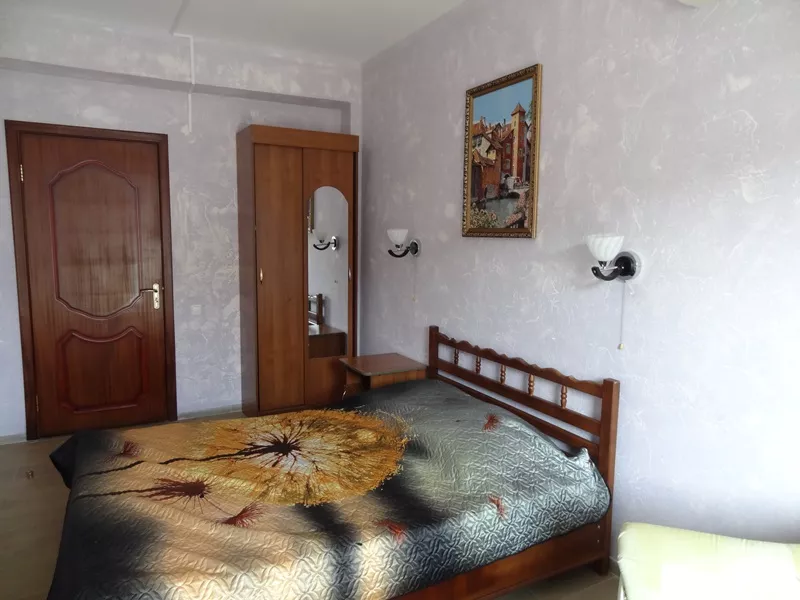 Мебель: односпальные или двуспальная кровати, шкаф, прикроватные тумбочки, прихожая, вешалка, зеркало. Удобства: кондиционер, телевизор, цифровое ТВ, холодильник, фен, отдельный вход.