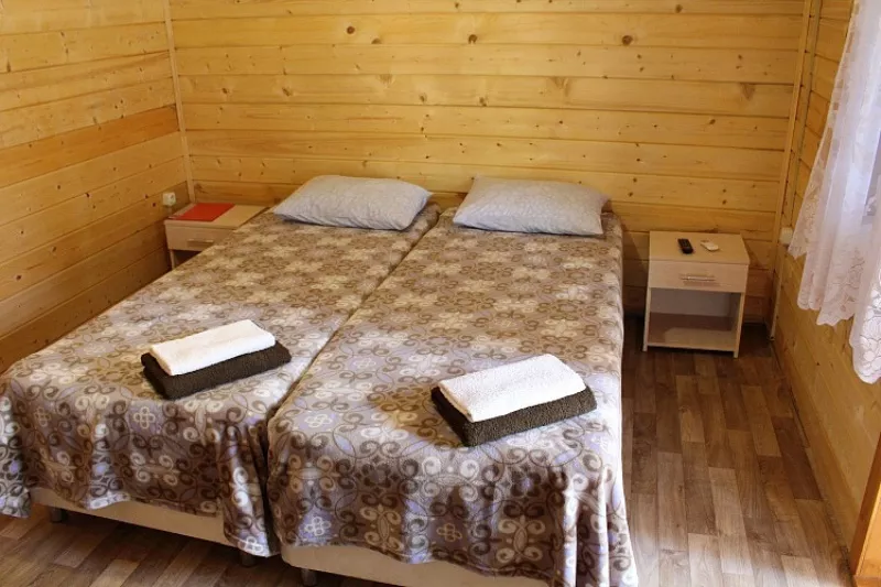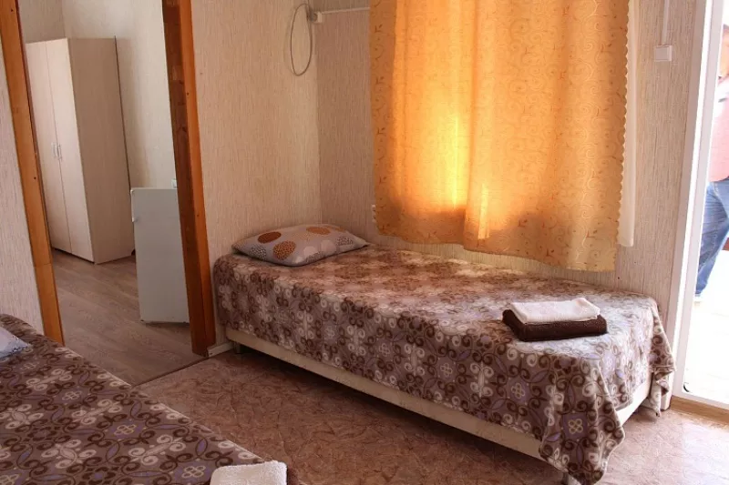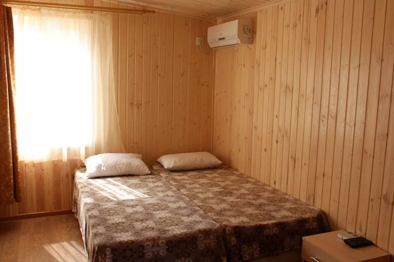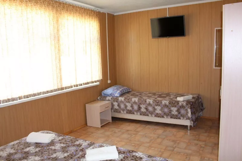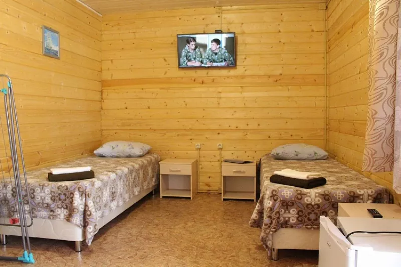Мебель: односпальные кровати, шкаф, стулья, прикроватные тумбочки, стол, вешалка, зеркало. Удобства: кондиционер, телевизор, ТВ, холодильник, посуда, терраса, интернет.