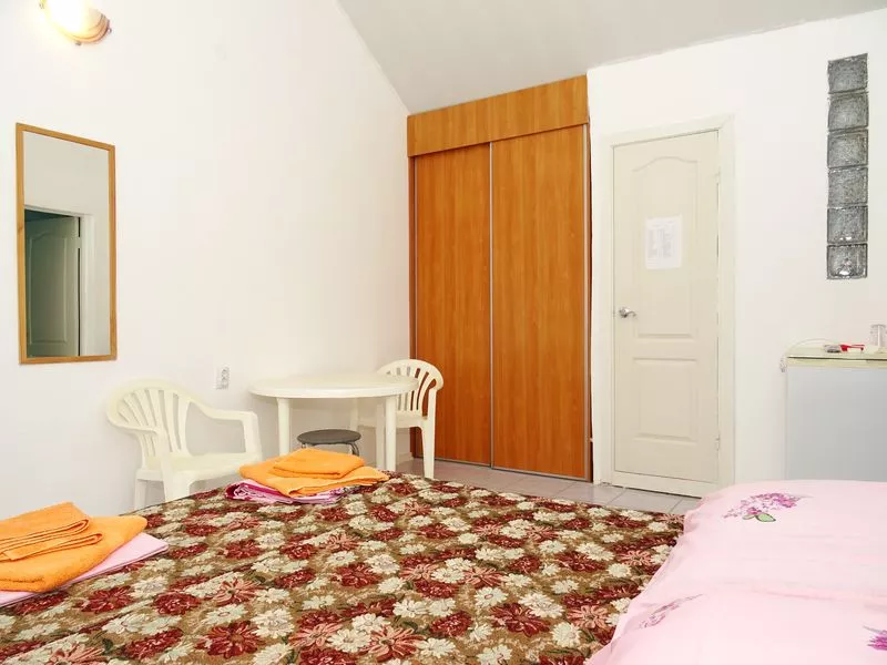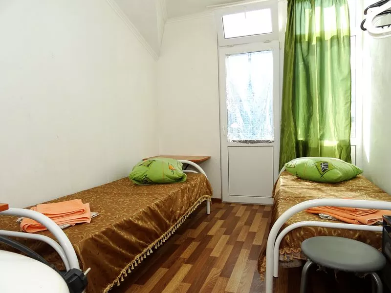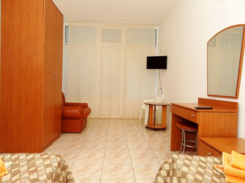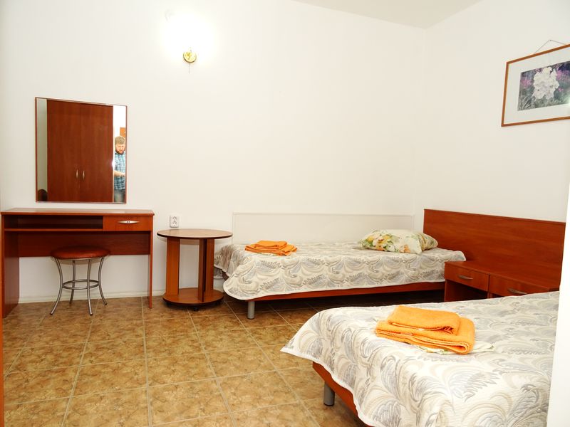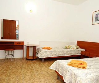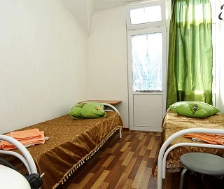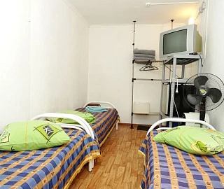 Мебель: односпальные кровати, стулья, журнальный столик, вешалка. Удобства: вентилятор, телевизор, цифровое ТВ, холодильник.