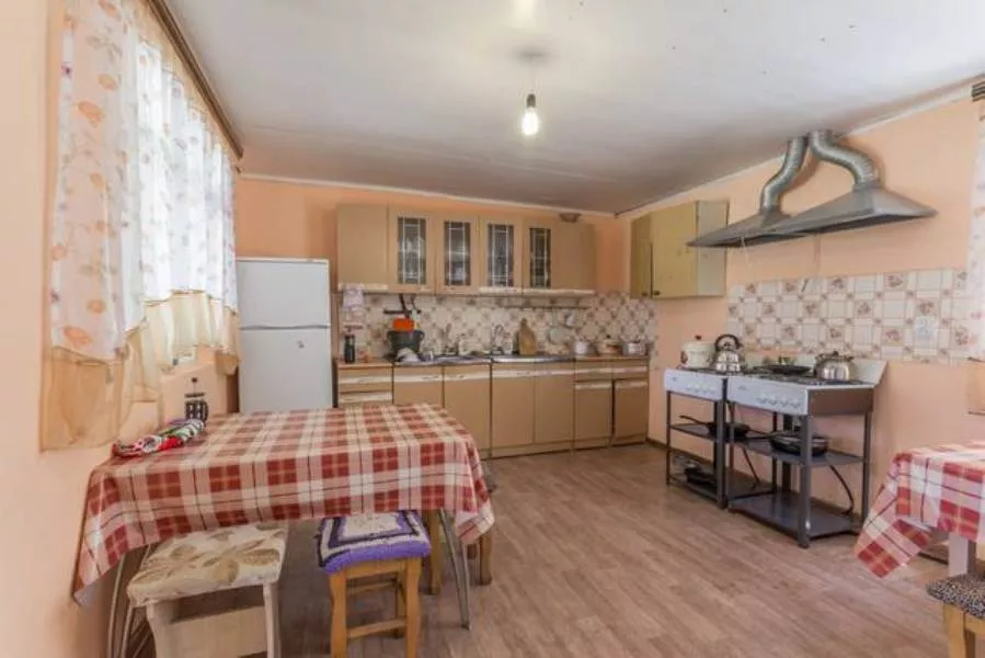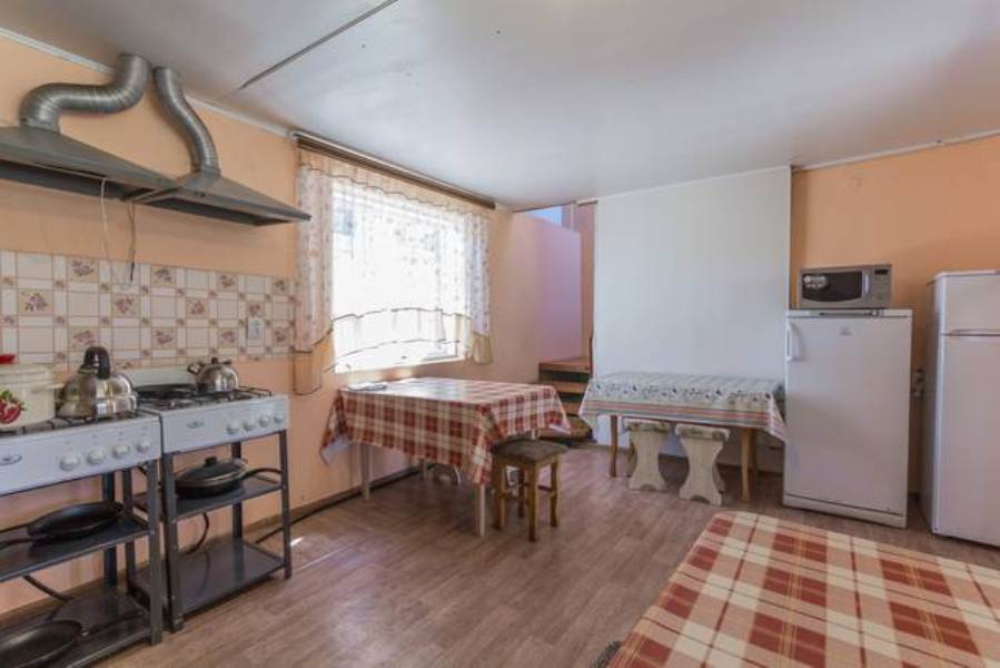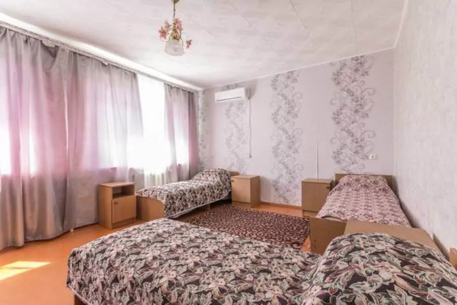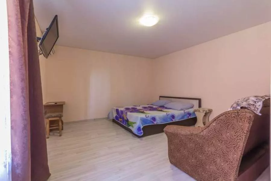 В номерах имеются спальные места, тумбочки, шкаф, кондиционеры и телевизор. Интернет на территории. Во дворе имеется кухня-столовая, где есть все необходимое для приготовления пищи. Во внутреннем дворике находятся столики для отдыха на свежем воздухе. Мангал, беседки, качели, детская площадка. Автостоянка бесплатно.- пляж песчаный - 15 минут