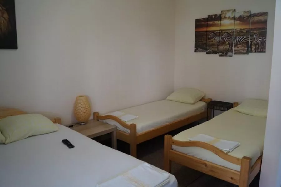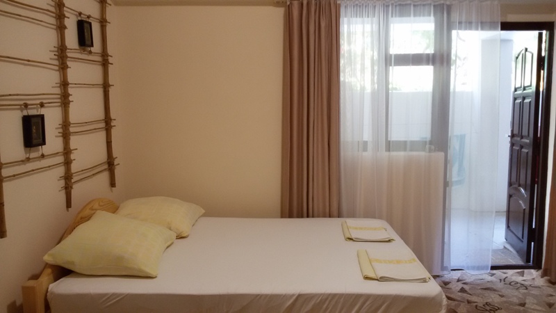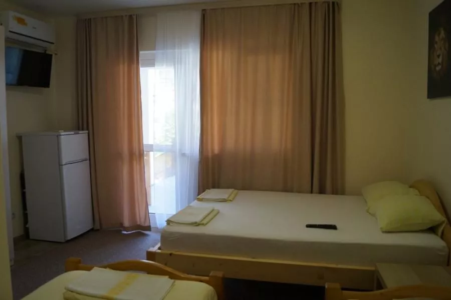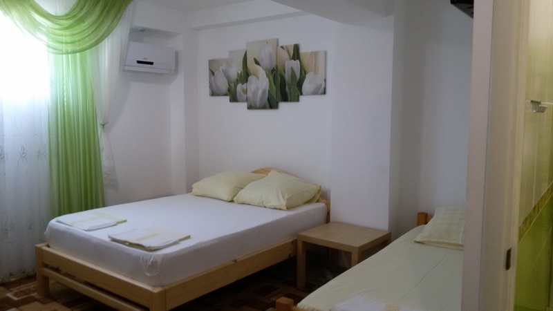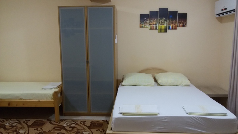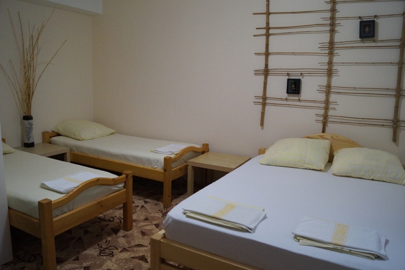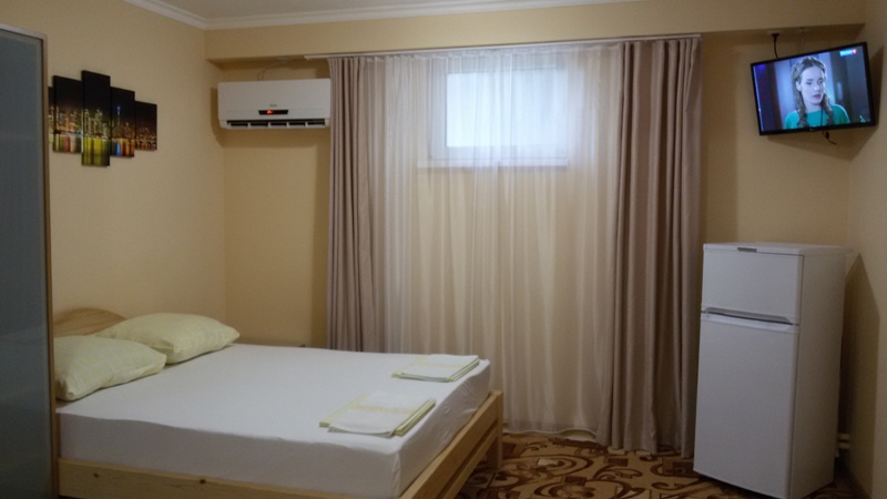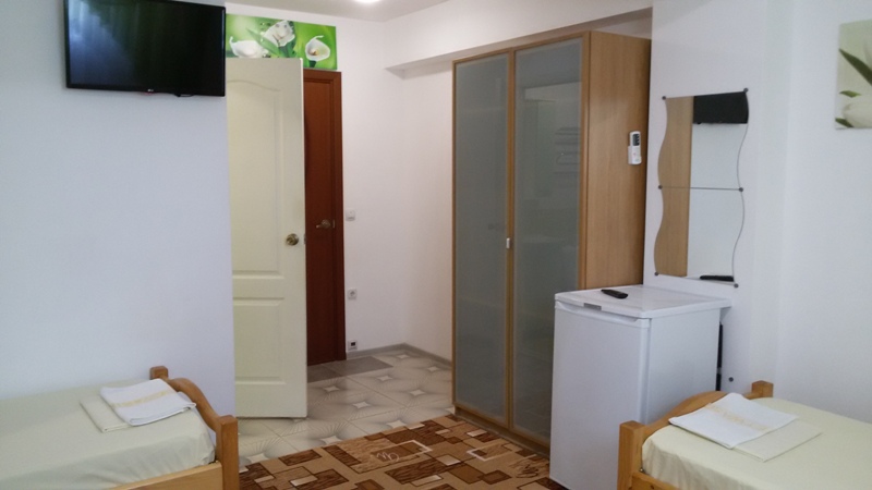 Мебель: односпальные или двуспальная кровати, стулья, пуфики, шкаф, тумбочки прикроватные, журнальный столик, вешалка, зеркало. Удобства: кондиционер, холодильник, телевизор, спутниковое ТВ, фен.