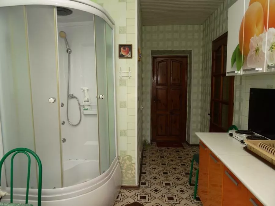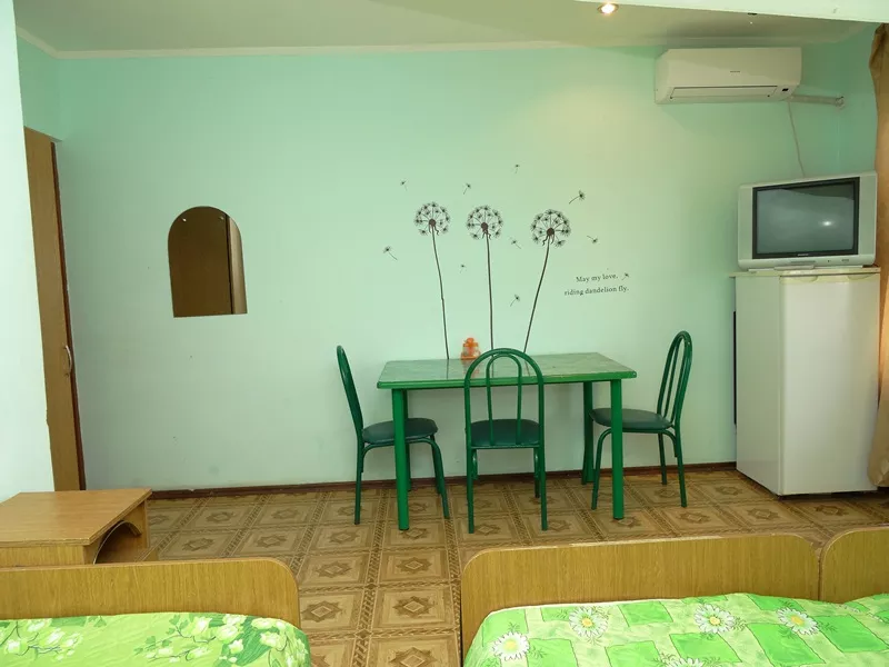 "Greens" гостевой дом в Благовещенской. Общая кухня-столовая с полным набором посуды для самостоятельного приготовления пищи. Так же на кухне есть кондиционер, плазменный телевизор со спутниковым ТВ, диваны для отдыха.