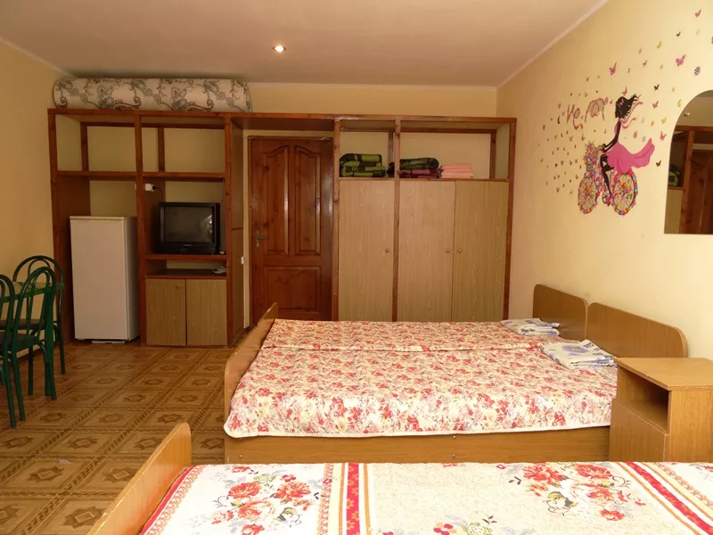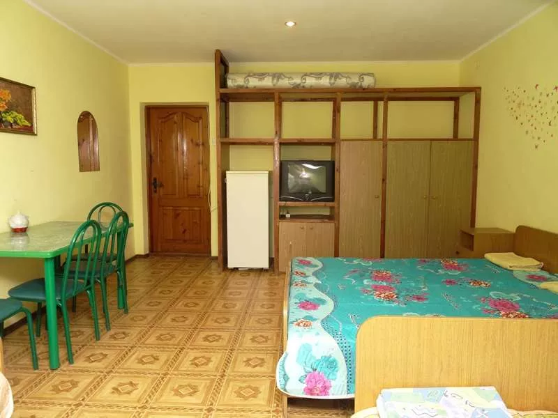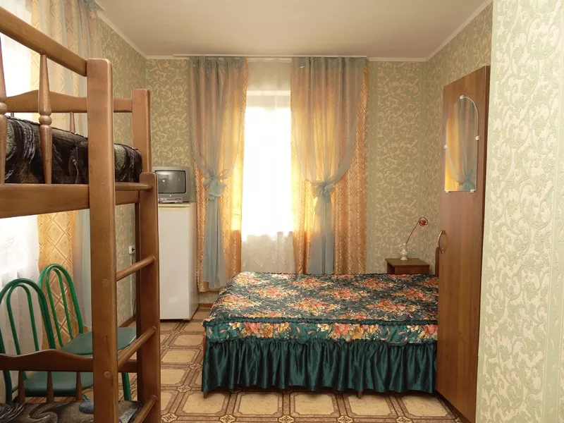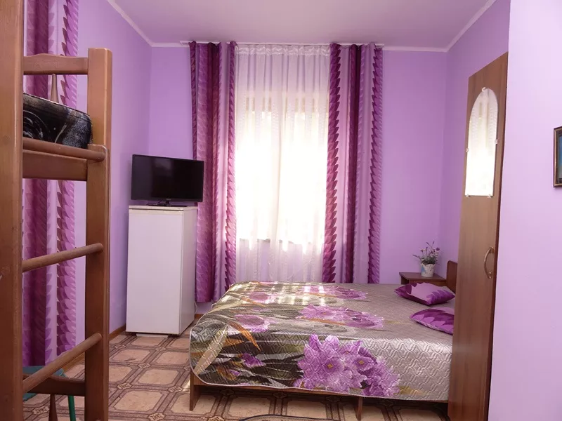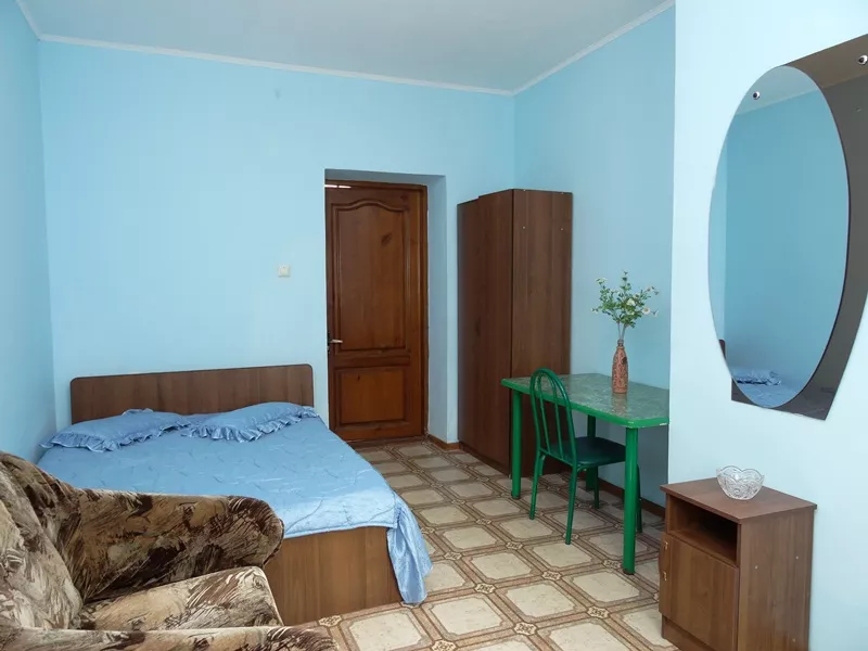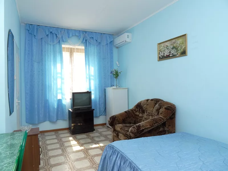 Мебель: двуспальная кровать, кресло-кровать, шкаф, стулья, прикроватные тумбочки, стол. Удобства: сплит-система, телевизор, холодильник.