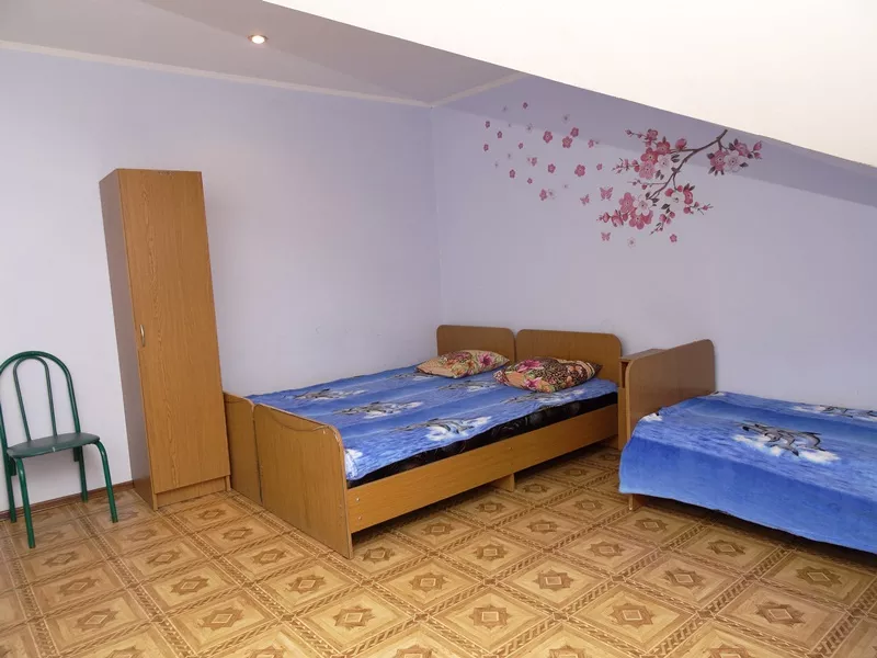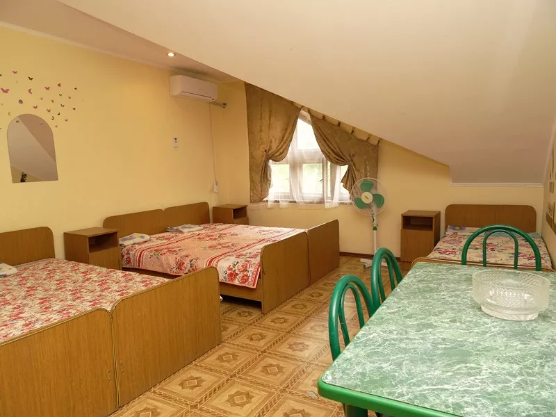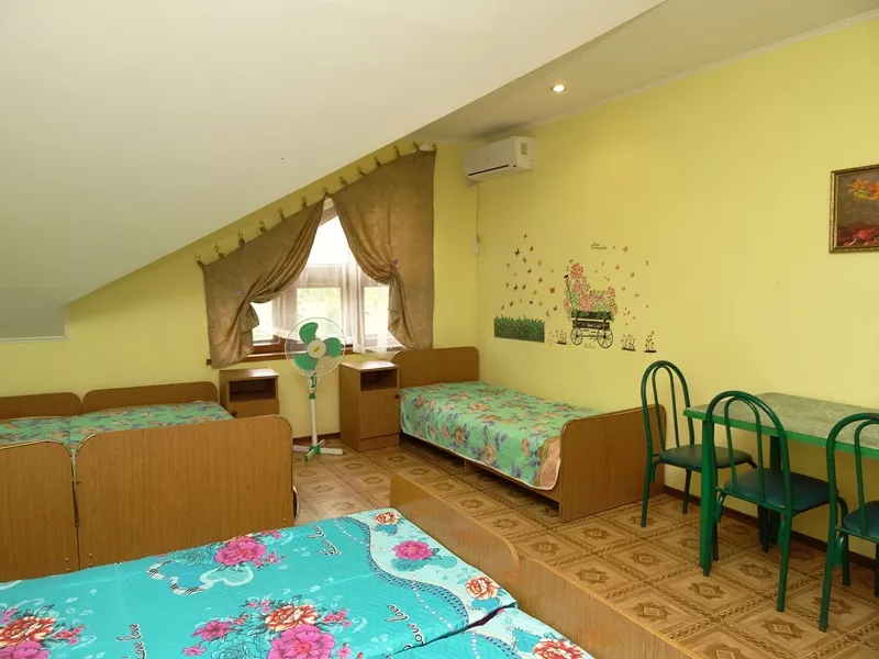 Мебель: 2 односпальные и двуспальная кровати, угловой диван-кровать со столом, шкаф, пуфики, прикроватные тумбочки, туалетный столик, журнальный столик, вешалка, кухонный гарнитур, обеденная зона. Удобства: сплит-система, телевизор, холодильник, электропечь, СВЧ, эл. чайник, посуда, 2х-комфорочная эл. печь.