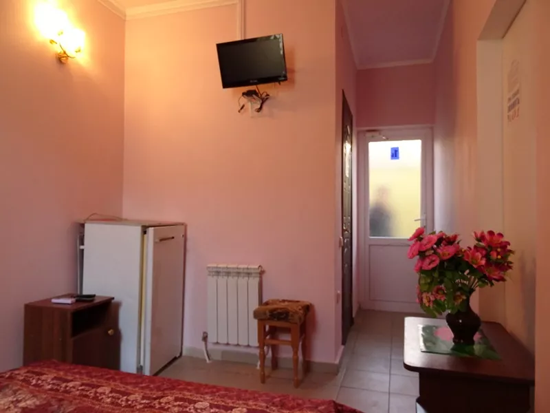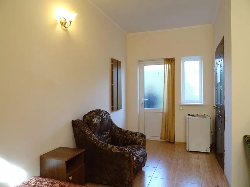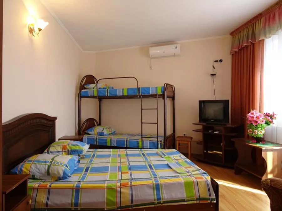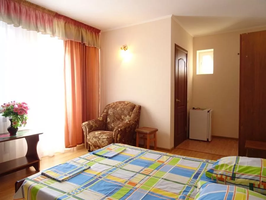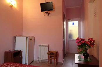 Мебель: односпальная или двухспальная кровати, кресло-кровать, шкаф, пуфики, прикроватные тумбочки, журнальный столик, вешалка, зеркало. Удобства: кондиционер, телевизор, цифровое ТВ, Wi-Fi интернет, холодильник, балкон (на 2,3 этажах).