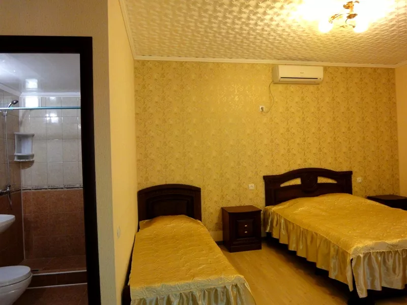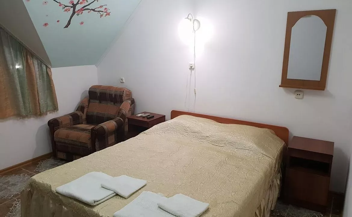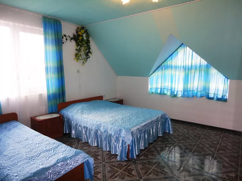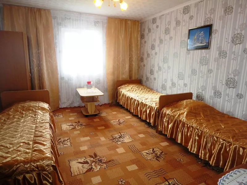 Клумбы и ухоженный газон во дворе, комнаты с нежно-сливочными оттенками, окна, в которых по вечерам отражается мягкий лунный свет, сделают ваш отдых сердцевиной добра, теплоты и семейного счастья. Дорога к морю пролегает через лиман с лечебной сероводородной грязью, поэтому вам предоставляется уникальная возможность укрепить свое здоровье.- пляж песчаный – 15 минут