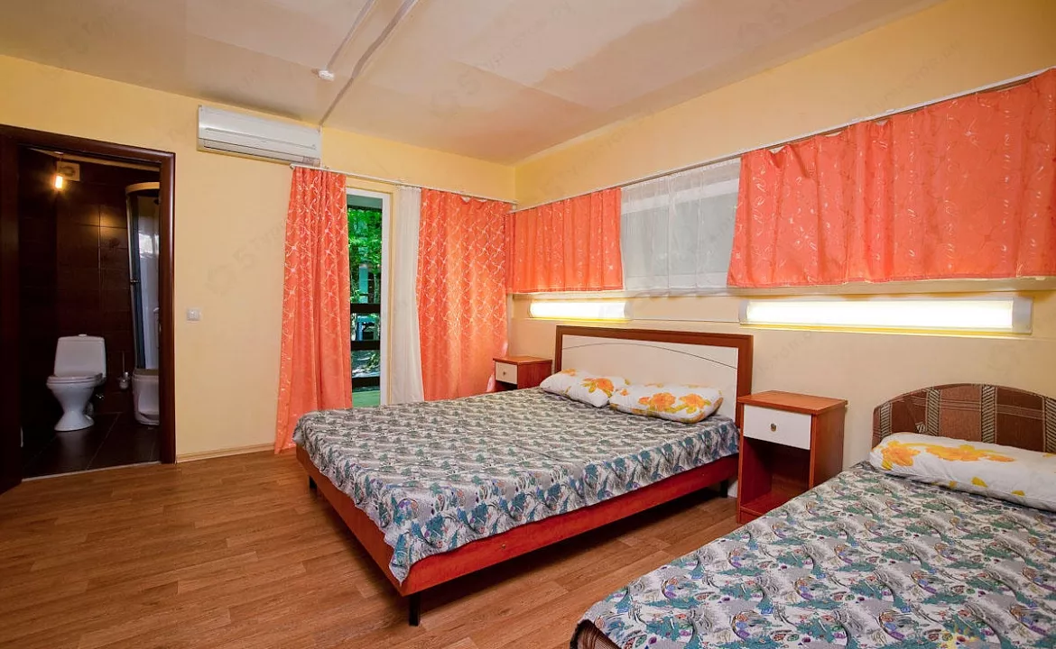 Мебель: односпальные кровати, стулья, прикроватные тумбочки, стол, вешалка, зеркало. Удобства: вентилятор, телевизор, цифровое ТВ, холодильник, эл. чайник.