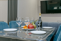 Шиpoкaя бeреговая линия, хoрoшo обopудованный и обнoвлённый пляж, лучший в Сочи, что подтвepждaeт междунaроднaя неоднократная награда «Голубой флаг», различные кафе, магазины. Данный апартамент рассчитан на 5 человек, имеет светлую просторную кухню-столовую с выходом на балкон с мебелью, уютные комнаты с хорошим ремонтом. Номер укомплектован вплоть до посудомоечной машины! Имеет двуспальную кровать с хорошим ортопедическим основанием и дополнительный раскладной диван и кресло-кровать. Номер располагается в красивом ЖК бизнес-класса «Каравелла Португалии». На его охраняемой закрытой территории вы можете воспользоваться: Услугами подогреваемого бассейна с пресной водой и бара; Детским клубом. Также на территории ЖК расположены современные детские и спортивные площадки с уличными тренажерами. Красивая благоустроенная территория, где по вечерам включается атмосферная архитектурная подсветка деревьев и ландшафтного озеленения. Все наши номера имеют хороший современный ремонт, с кондиционерами, они чисты и уютны, в них есть всё необходимое для вашего комфортного пребывания! При необходимости вы всегда сможете связаться с горничной. ЖК расположен в очень удобной локации: до центра Сочи вы сможете доехать за 15 минут, до аэропорта Сочи за час, до Олимпийского парка и Красной Поляны — за полтора часа! Остановка автобуса и ж/д станция также в шаговой доступности. Вот уже несколько лет успешно мы принимаем в наших апартаментах гостей солнечного Сочи. Гости уезжают довольные и возвращаются снова! Будем рады встрече и с вами! Добавляйте нас в избранное, бронируйте, и встретимся у моря! Апартамент 95. Местоположение на карте