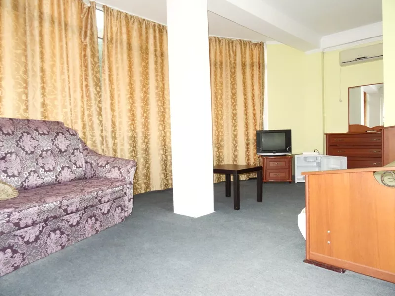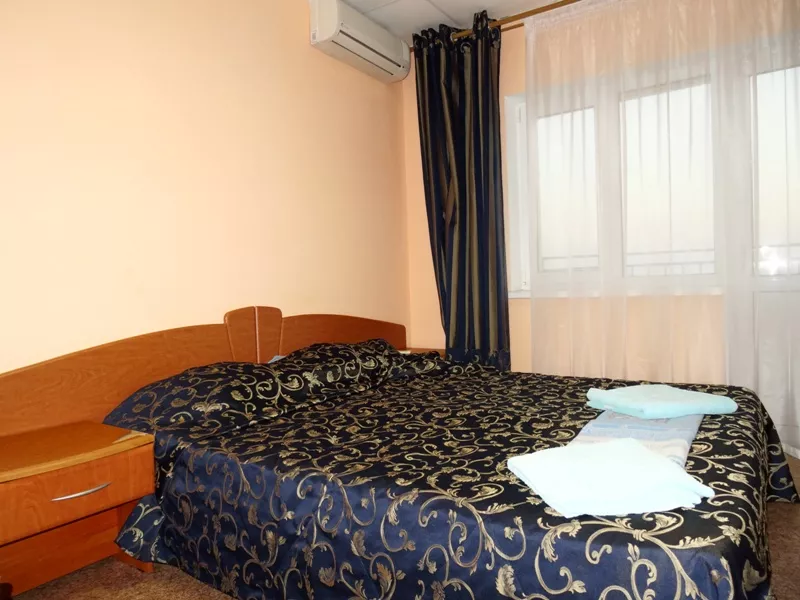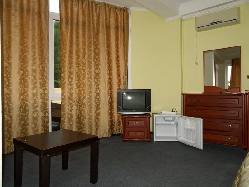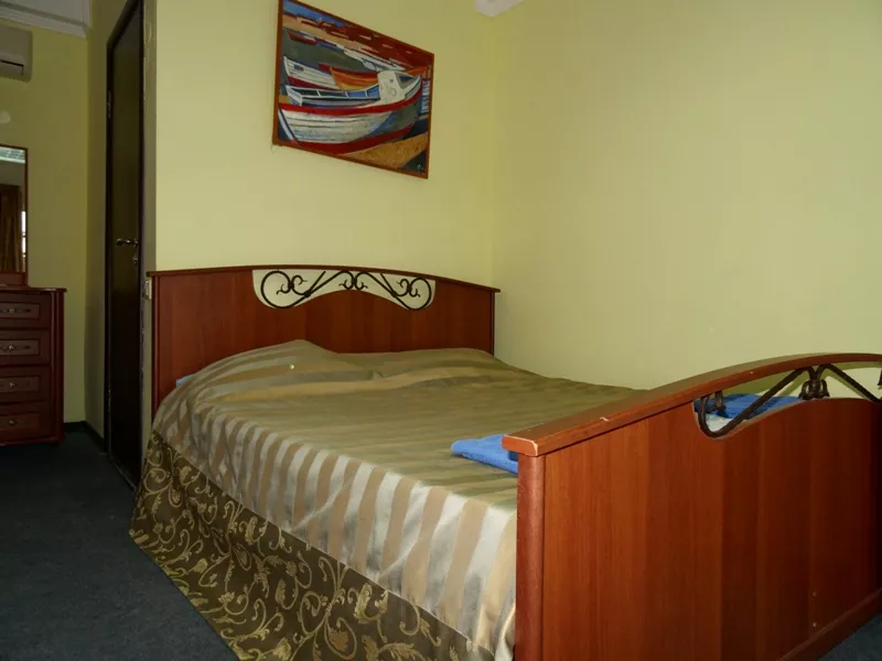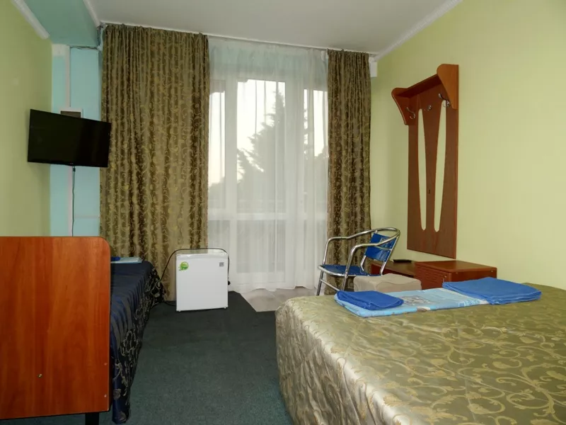 Мебель: односпальные или двуспальная кровати, шкаф, стулья, прикроватные тумбочки, стол, комод, прихожая, вешалка, зеркало. Удобства: кондиционер, телевизор, спутниковое ТВ, интернет, холодильник, балкон.