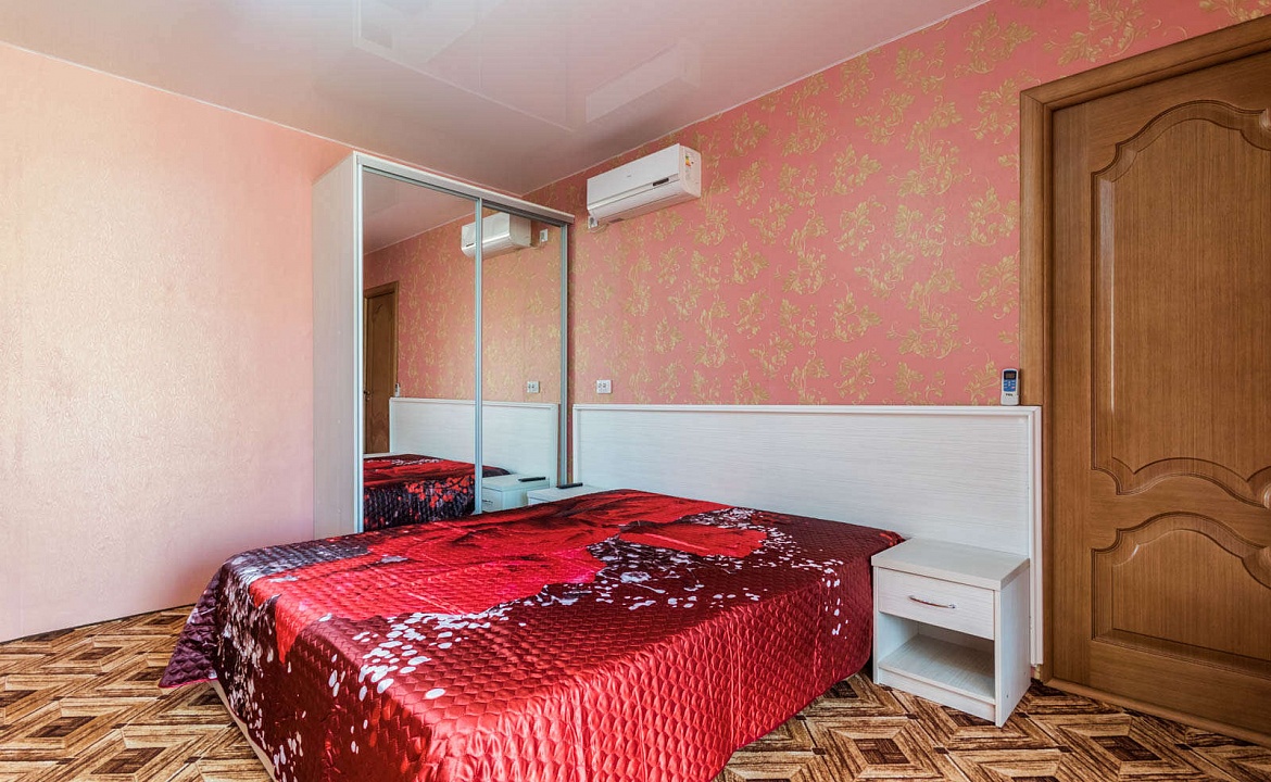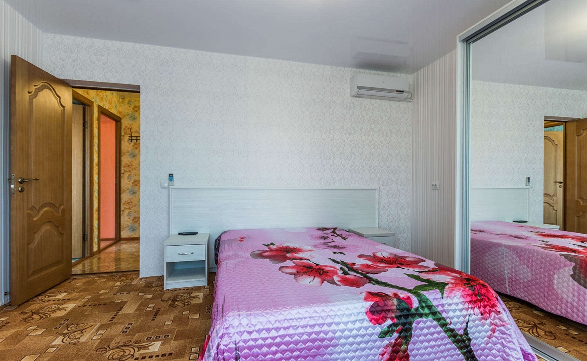 Мебель: односпальные и двуспальная кровати, диван-кровать, 2 шкафа, прикроватные тумбочки, кухонный гарнитур. Удобства: сплит-система (в каждой комнате), холодильник, телевизор, ТВ (в каждой спальне), эл. чайник, СВЧ, посуда, интернет, цифровое ТВ.