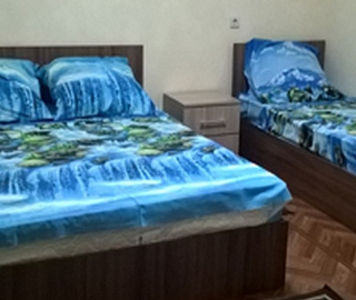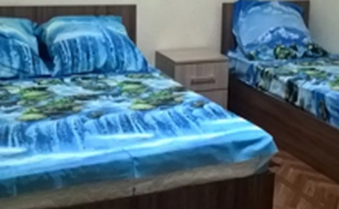 В двухкомнатном номере: двуспальная и односпальная кровати, стулья, пуфики, шкаф, прикроватные тумбочки, стол, прихожая, зеркало, обеденная зона, кондиционер, холодильник, телевизор, эл. чайник, посуда. Санузел в каждой комнате.