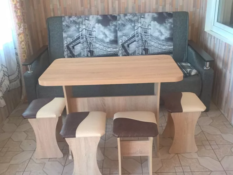 В номере: двуспальная и двухъярусная кровати, диван, стулья, пуфики, шкаф, прикроватные тумбочки, стол, прихожая, зеркало, обеденная зона, кондиционер, холодильник, телевизор, эл. чайник, посуда. Душ и туалет в номере.