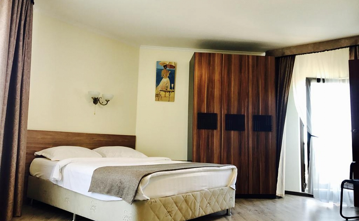 Просторный видовой номер, на 3-4 человека, с балконом и видом на море. ТВ со спутниковыми каналами. Набор посуды: ложки, вилки, эл. чайник, мини-холодильник.