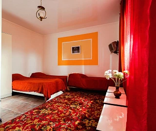 Уютный номер с двухспальной кроватью или с двумя раздельными кроватями,оснащен сплитсистемой ,телевизором ,холодильником (один на два номера ) есть санузел.