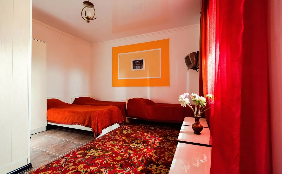 Уютный номер с двухспальной кроватью или с двумя раздельными кроватями,оснащен сплитсистемой ,телевизором ,холодильником (один на два номера ) есть санузел.