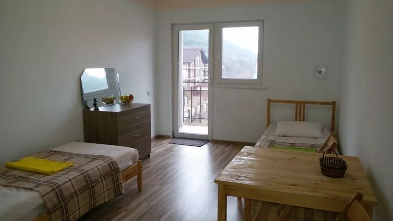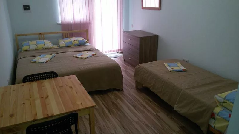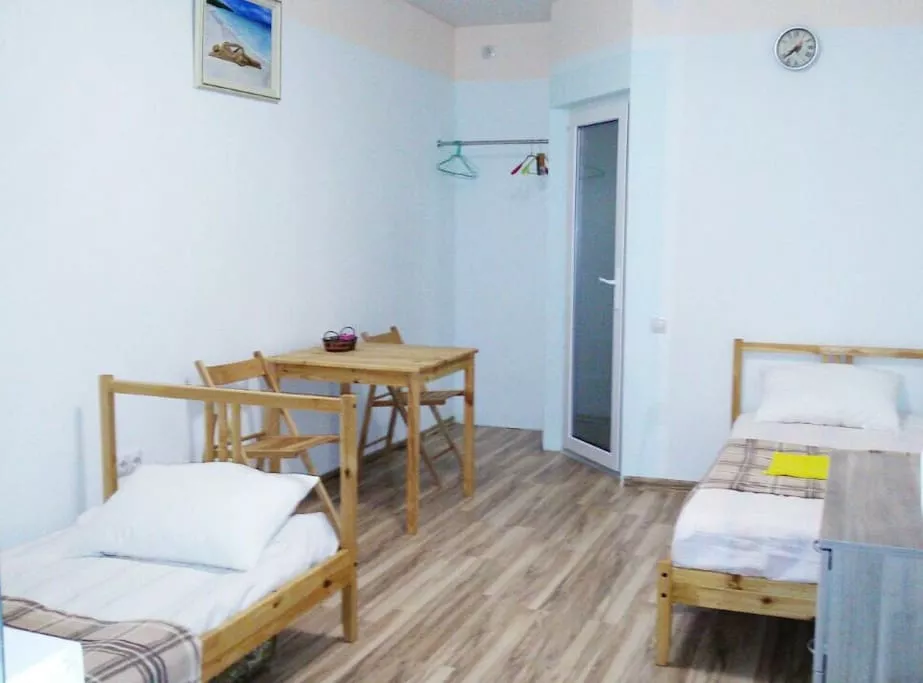 Мебель: кровать 120*190, диван-кровать 140*200, стулья, стол, вешалка, зеркало. Удобства: сплит-система, мыло, полотенца, постельное белье, общий балкон.